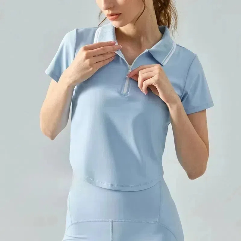 Half-zipper slim slimming sports short sleeves