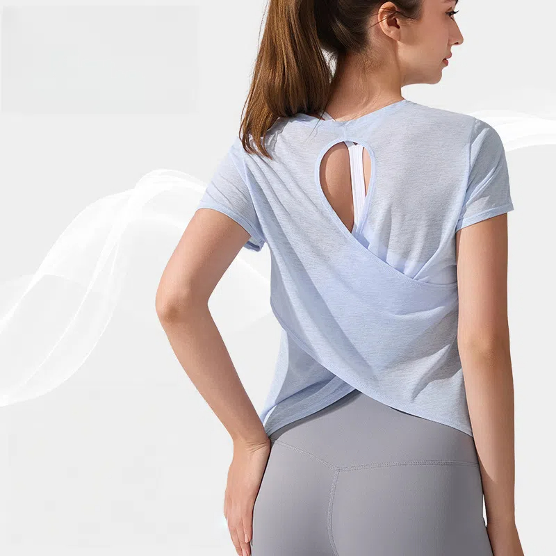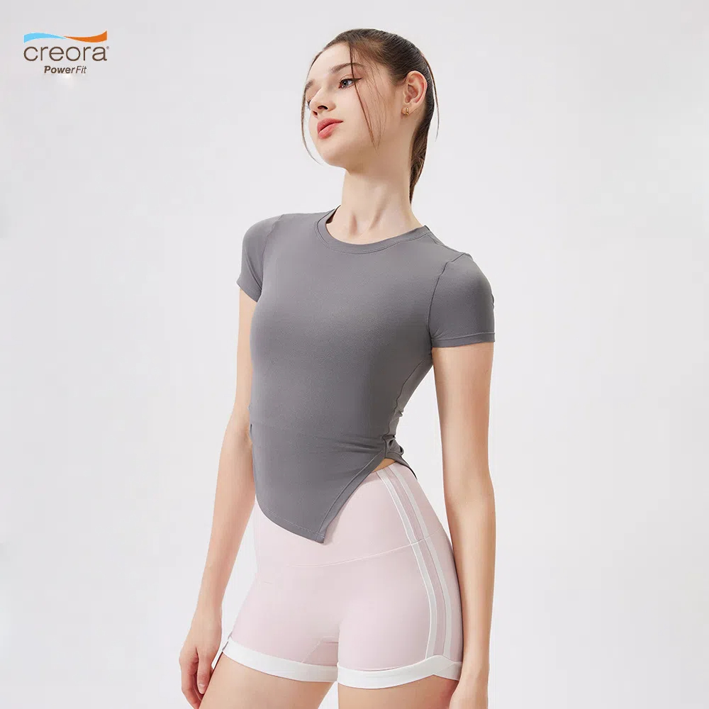 Cool, Breathable, Antibacterial, Asymmetrical, Waist-cinching, Sports, Running, Training, Short sleeves
