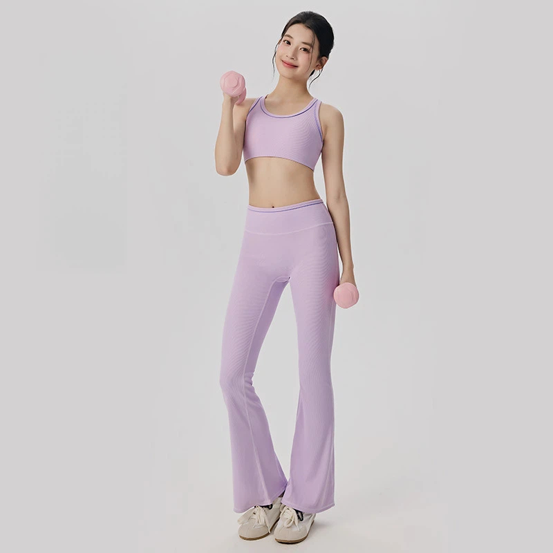 Contrast ribbed high-waisted yoga suit set