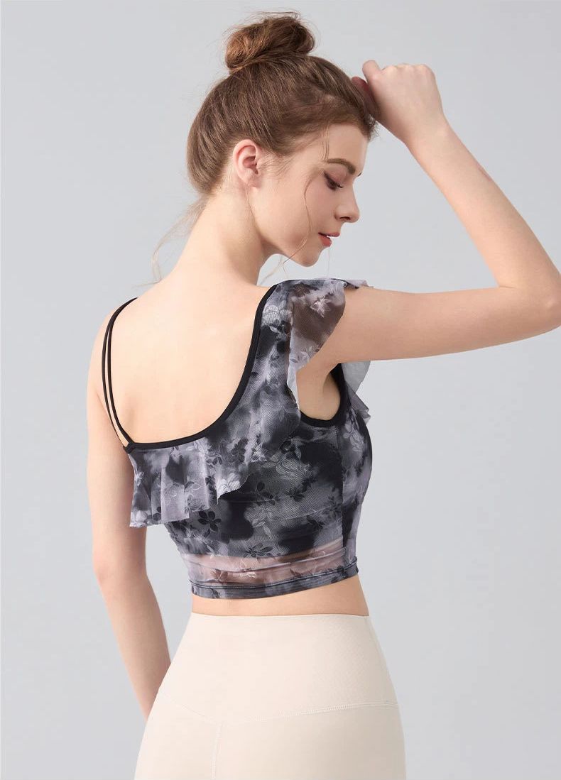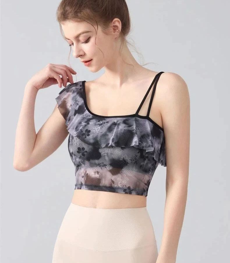 Slanted shoulder sexy ruffled mesh quick-dryer