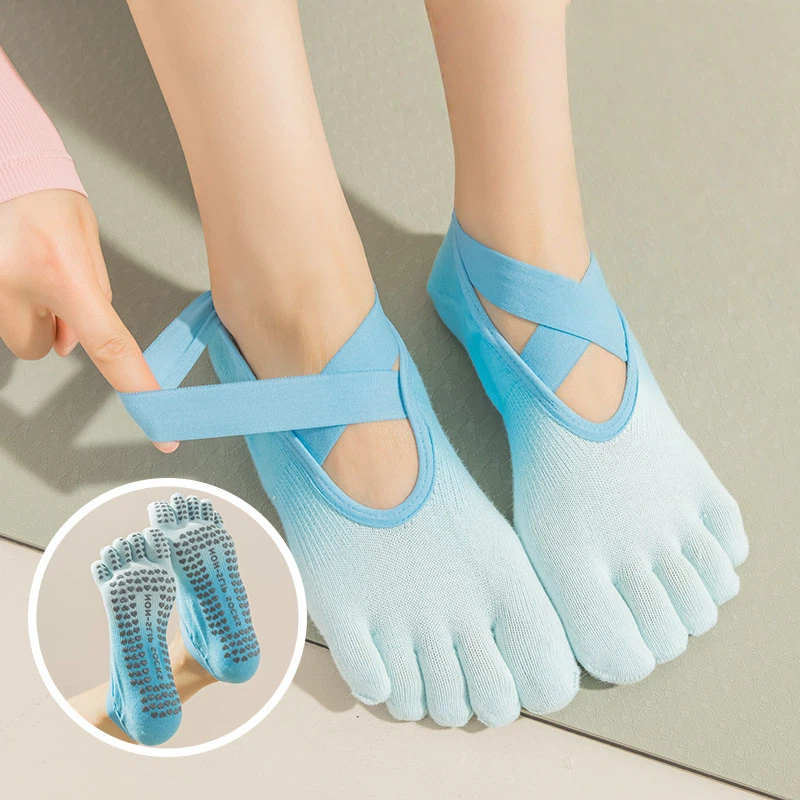 Professional sweat absorbing breathable gradient color yoga sports five finger socks