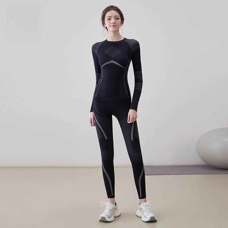 Wavy lace dopamine long-sleeved top high-waisted hip lifting leggings set