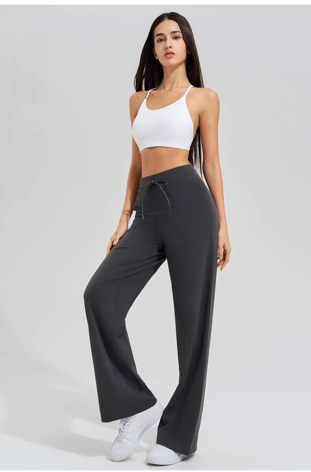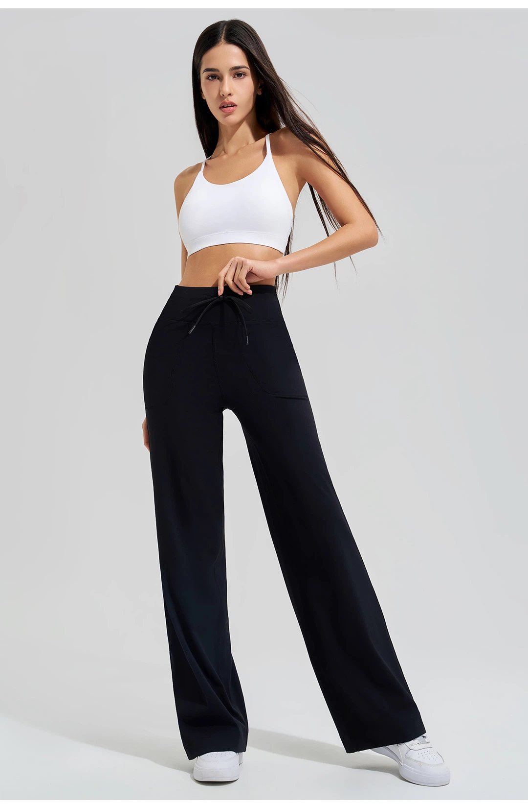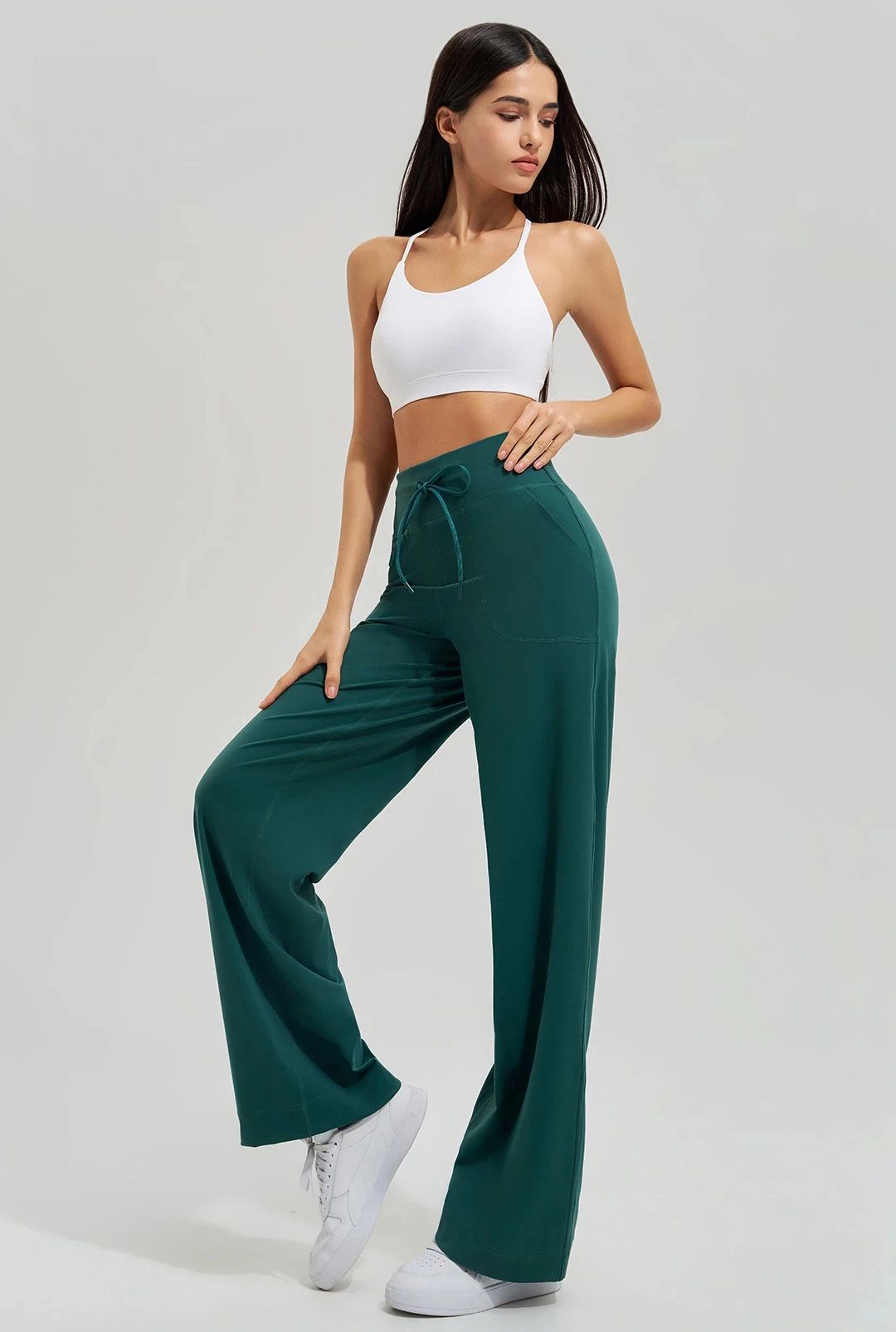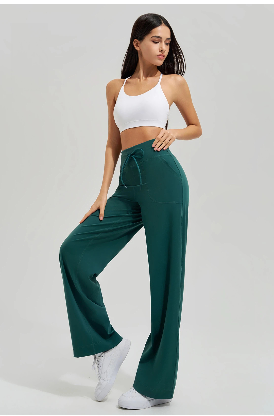 High-waisted elasticated quick-drying loose wide-leg trousers