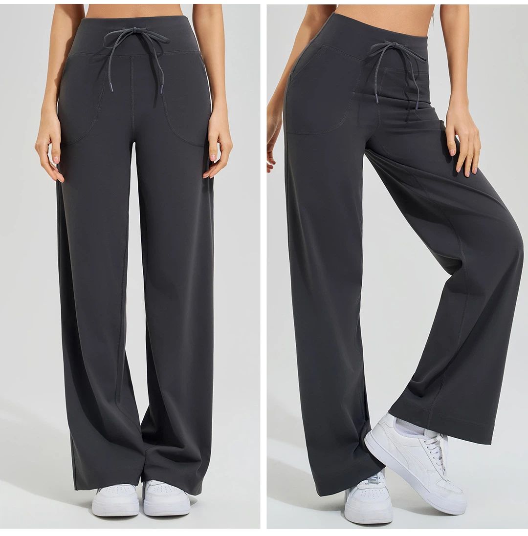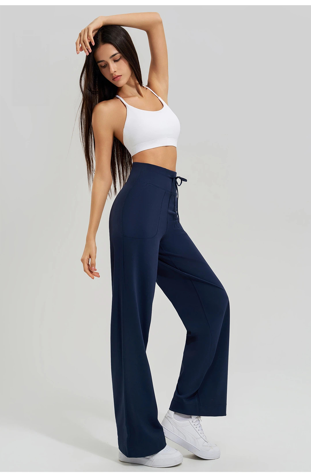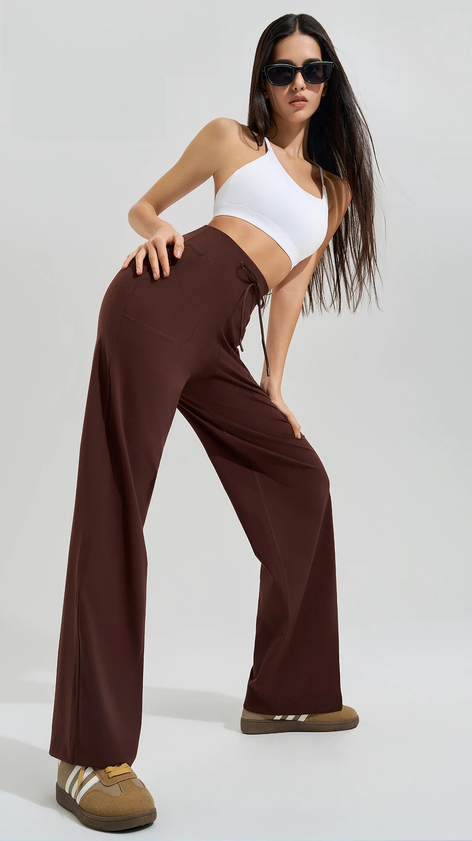 High-waisted elasticated quick-drying loose wide-leg trousers