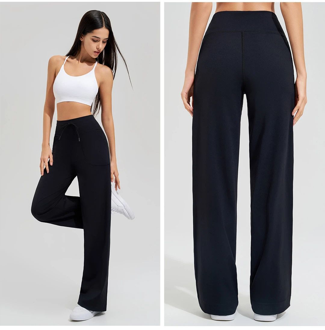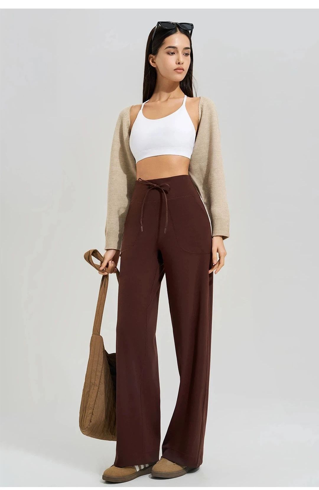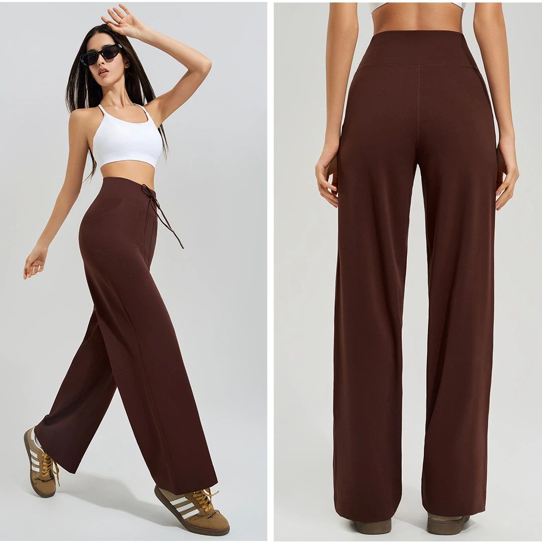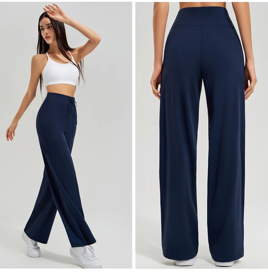High-waisted elasticated quick-drying loose wide-leg trousers