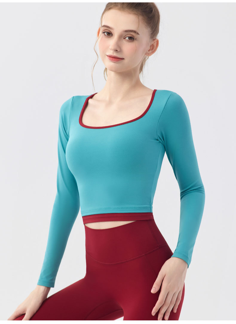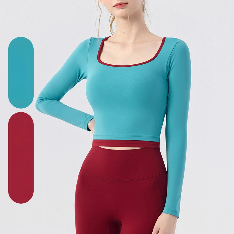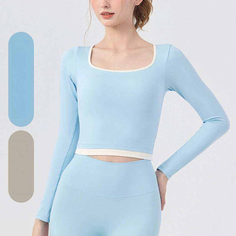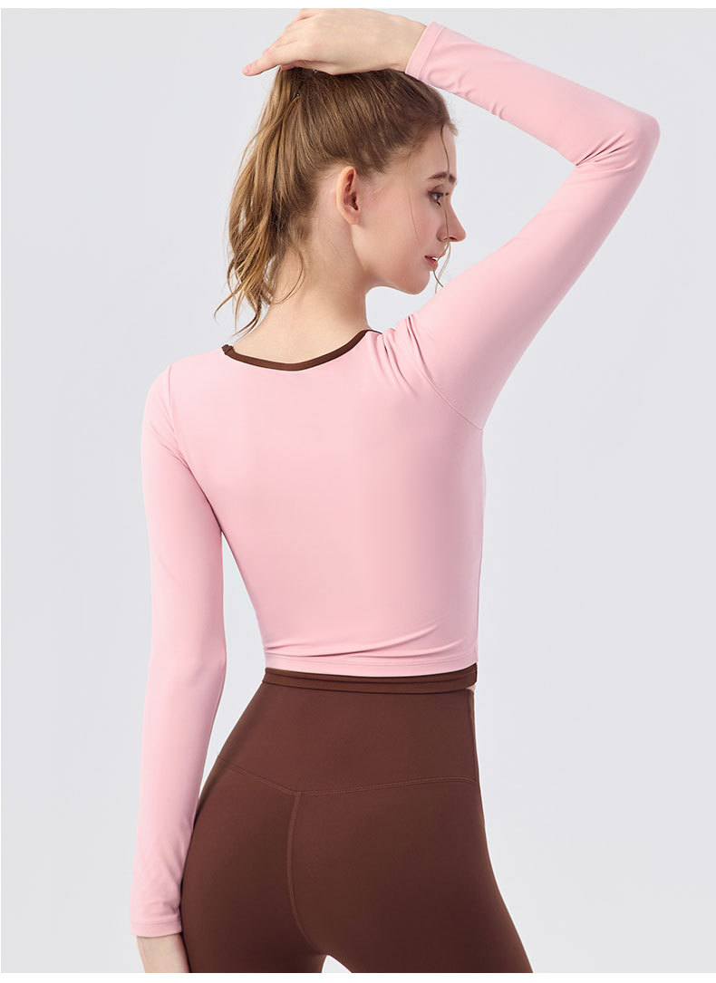 New contrasting fake two-piece Pilates running sports fitness long-sleeved top