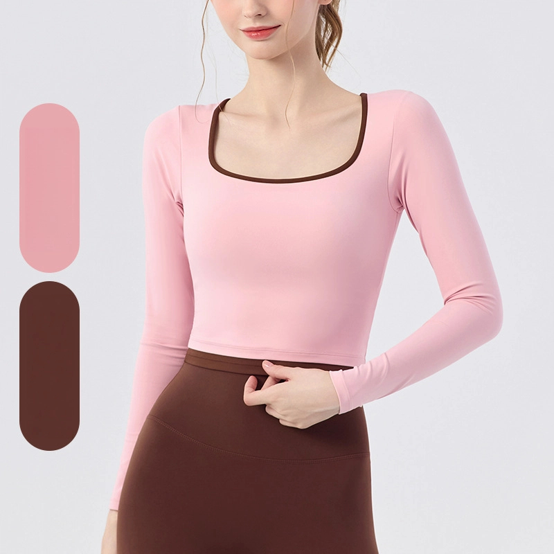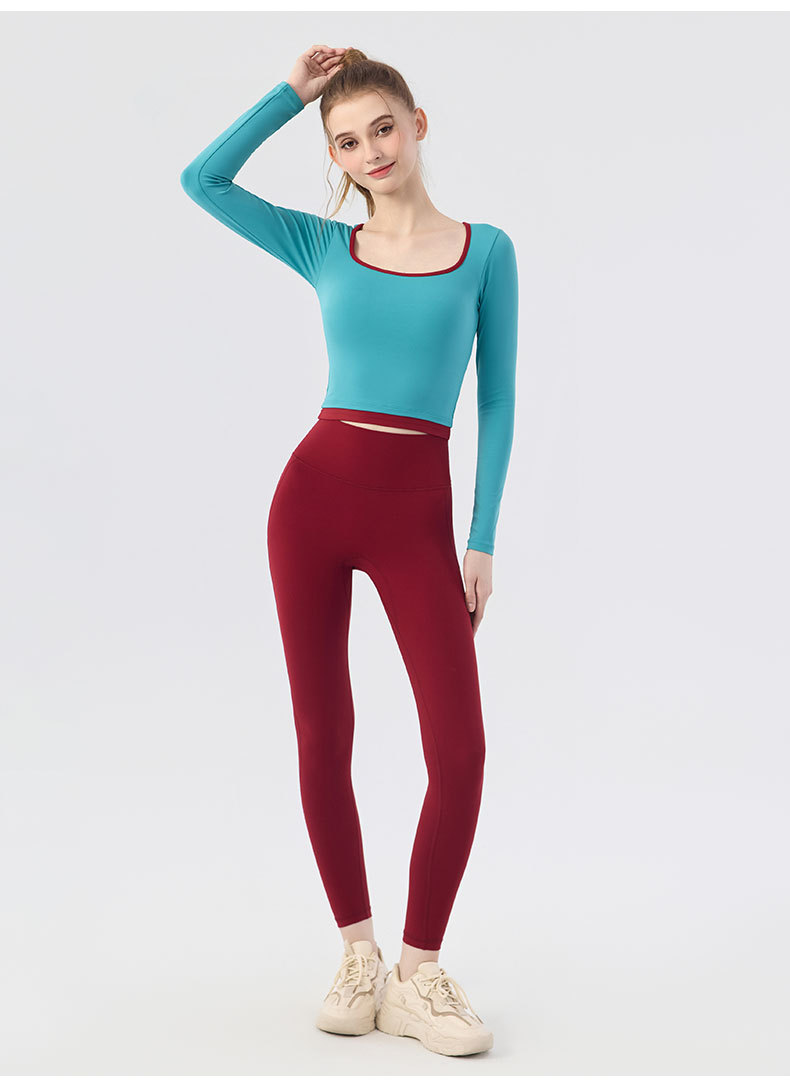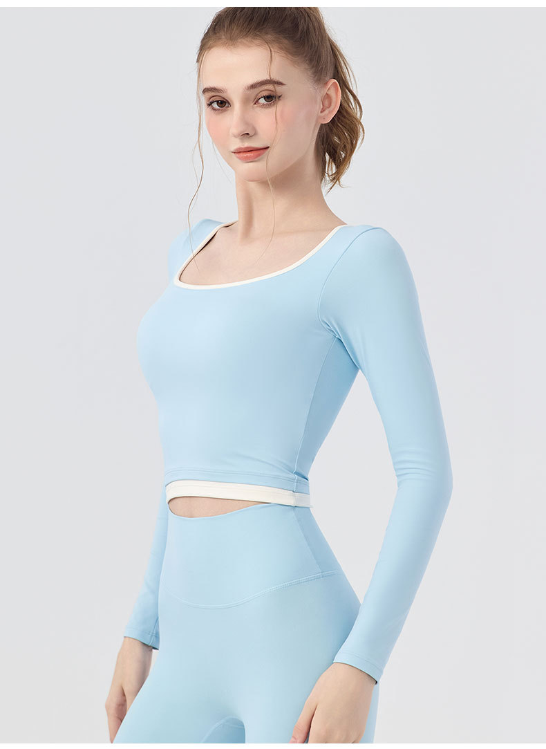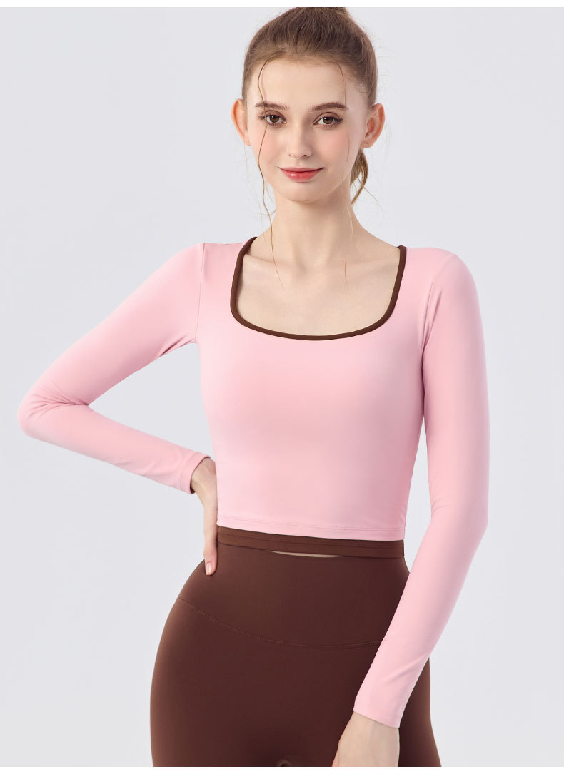 New contrasting fake two-piece Pilates running sports fitness long-sleeved top
