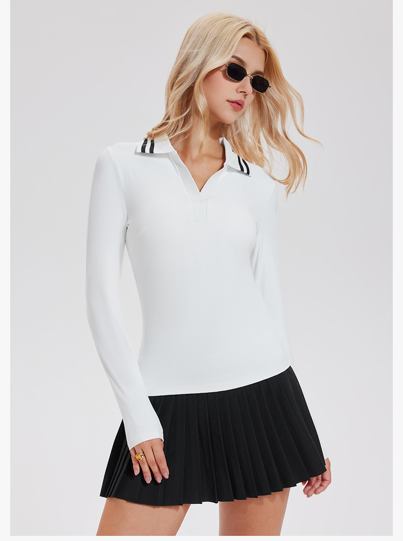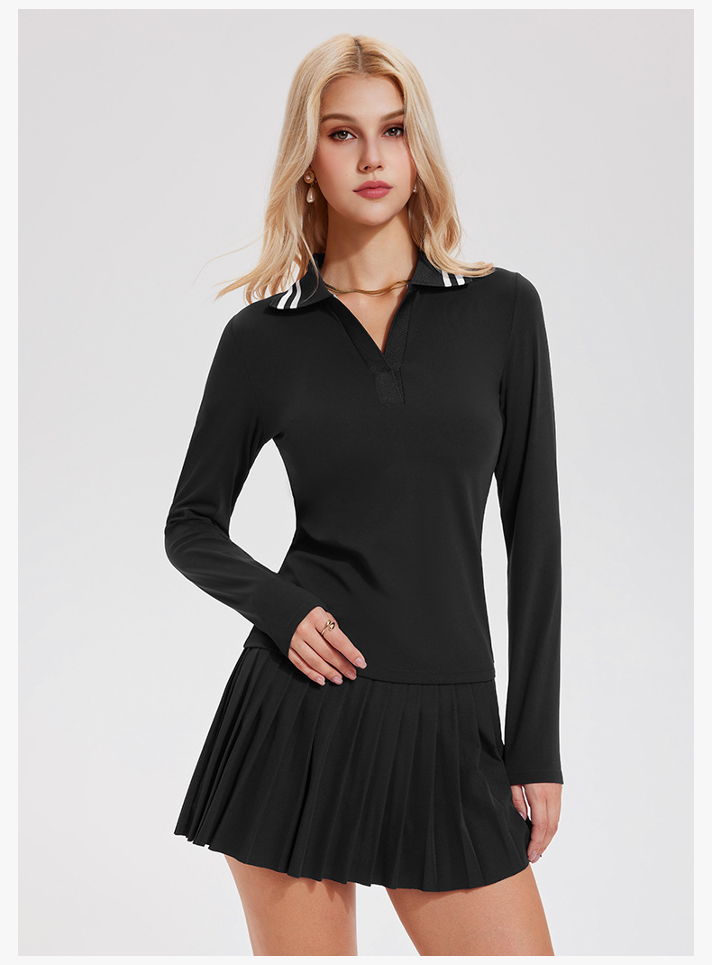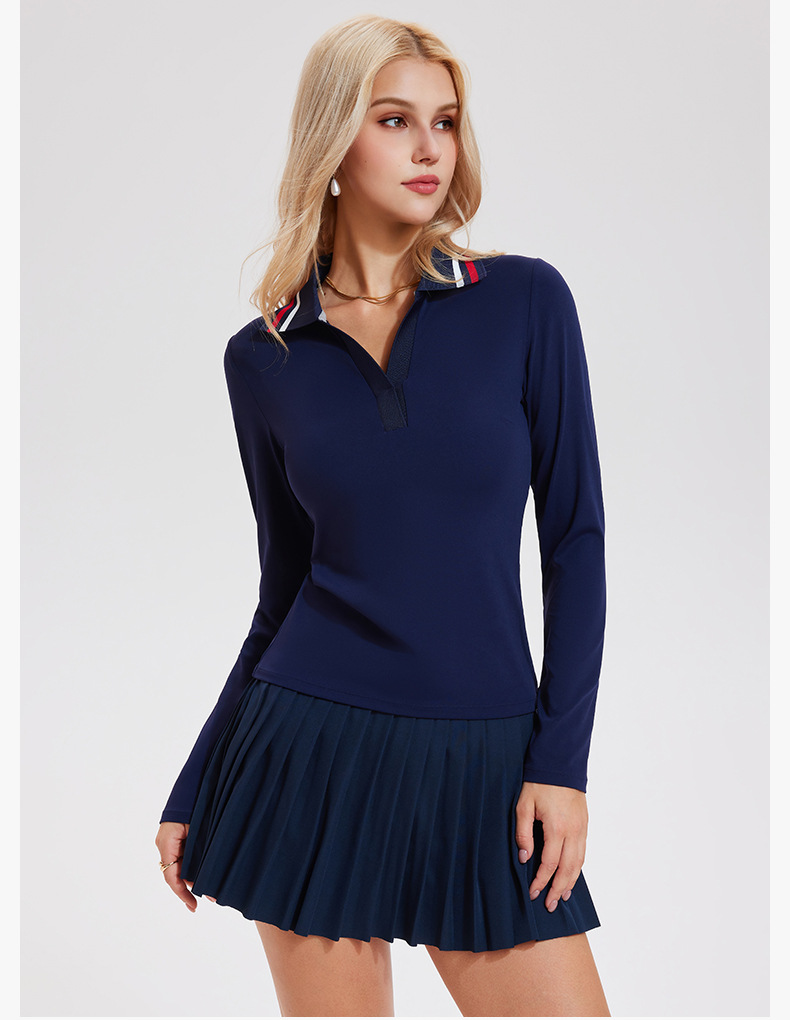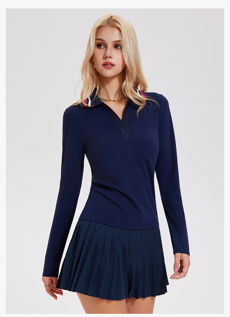 Quick-drying V-neck simple retro polo shirt long-sleeved top