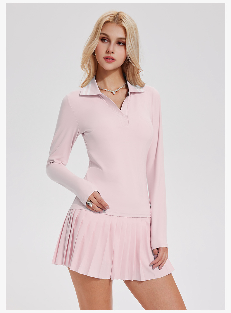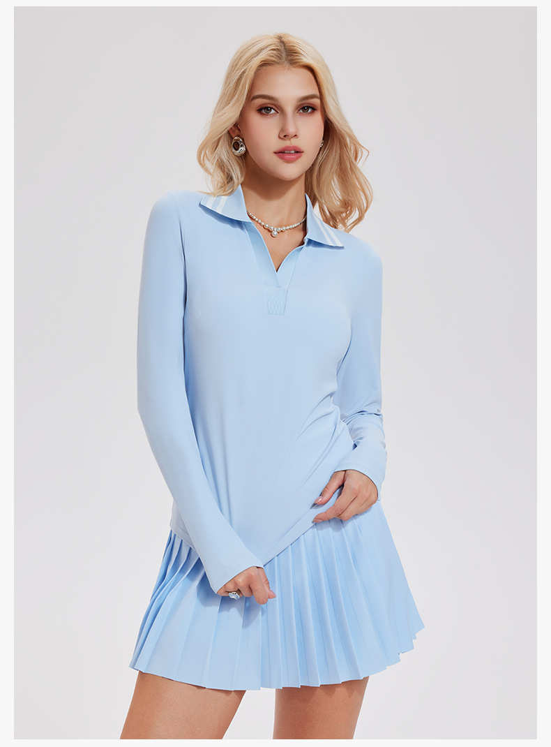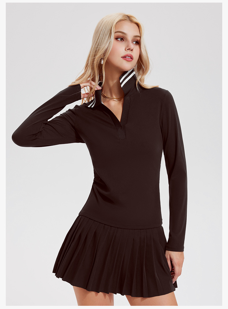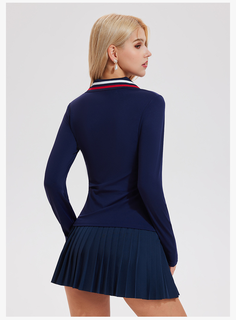 Quick-drying V-neck simple retro polo shirt long-sleeved top