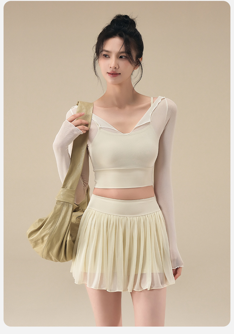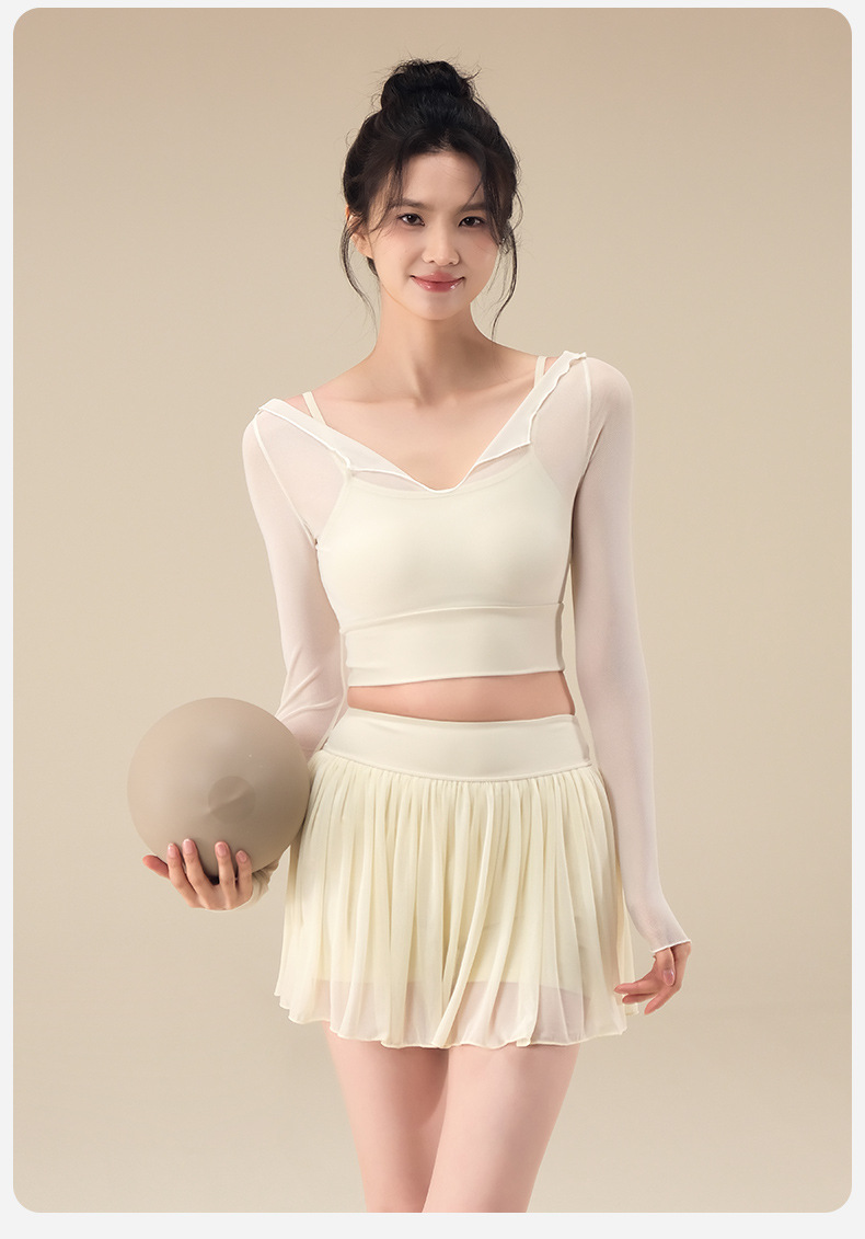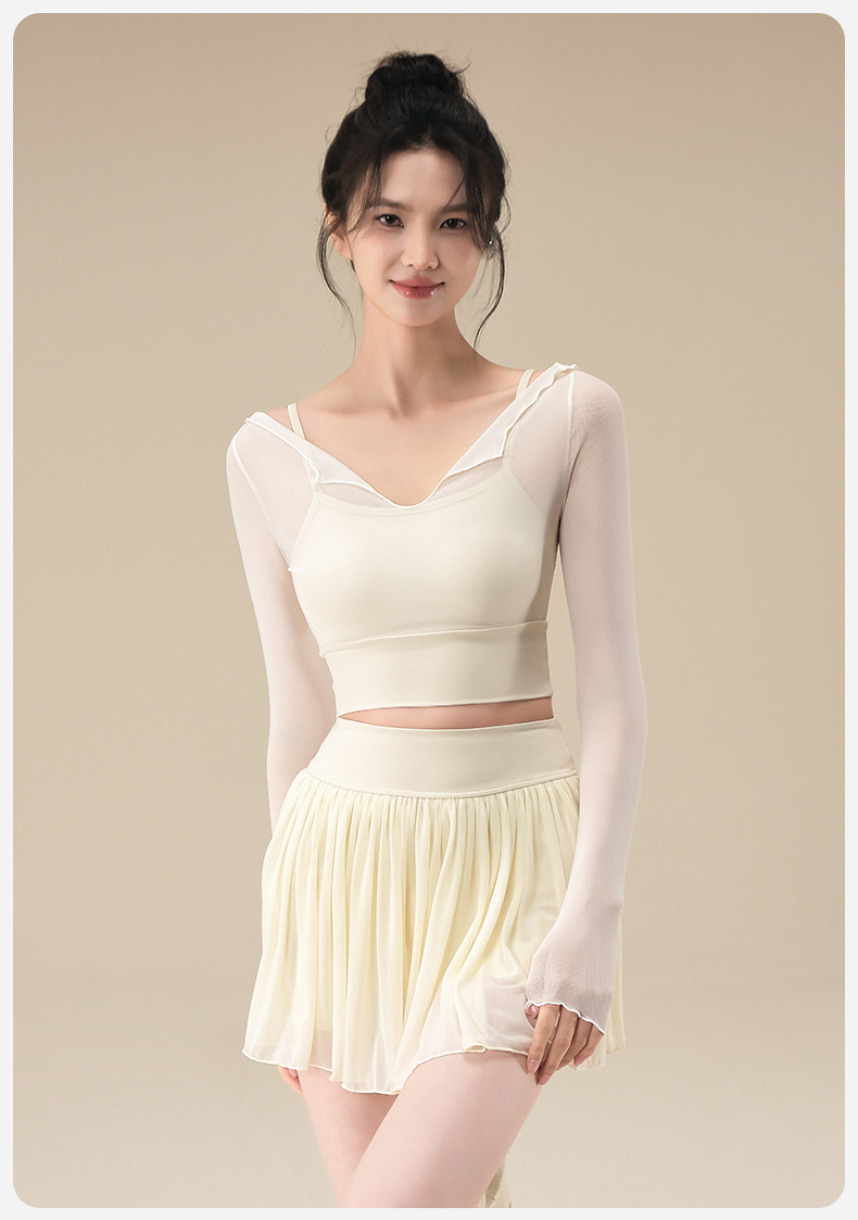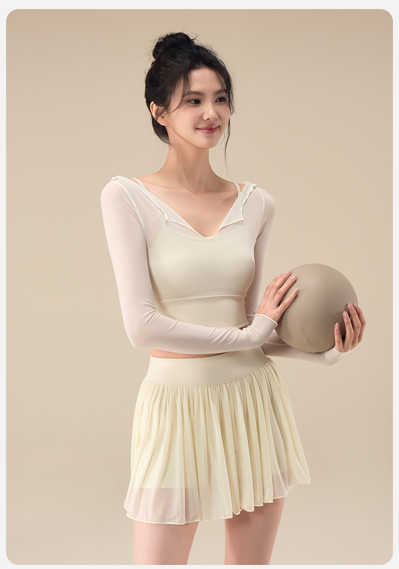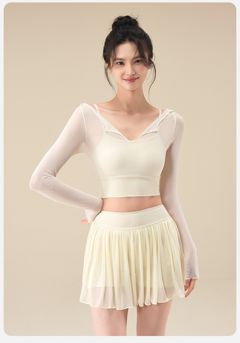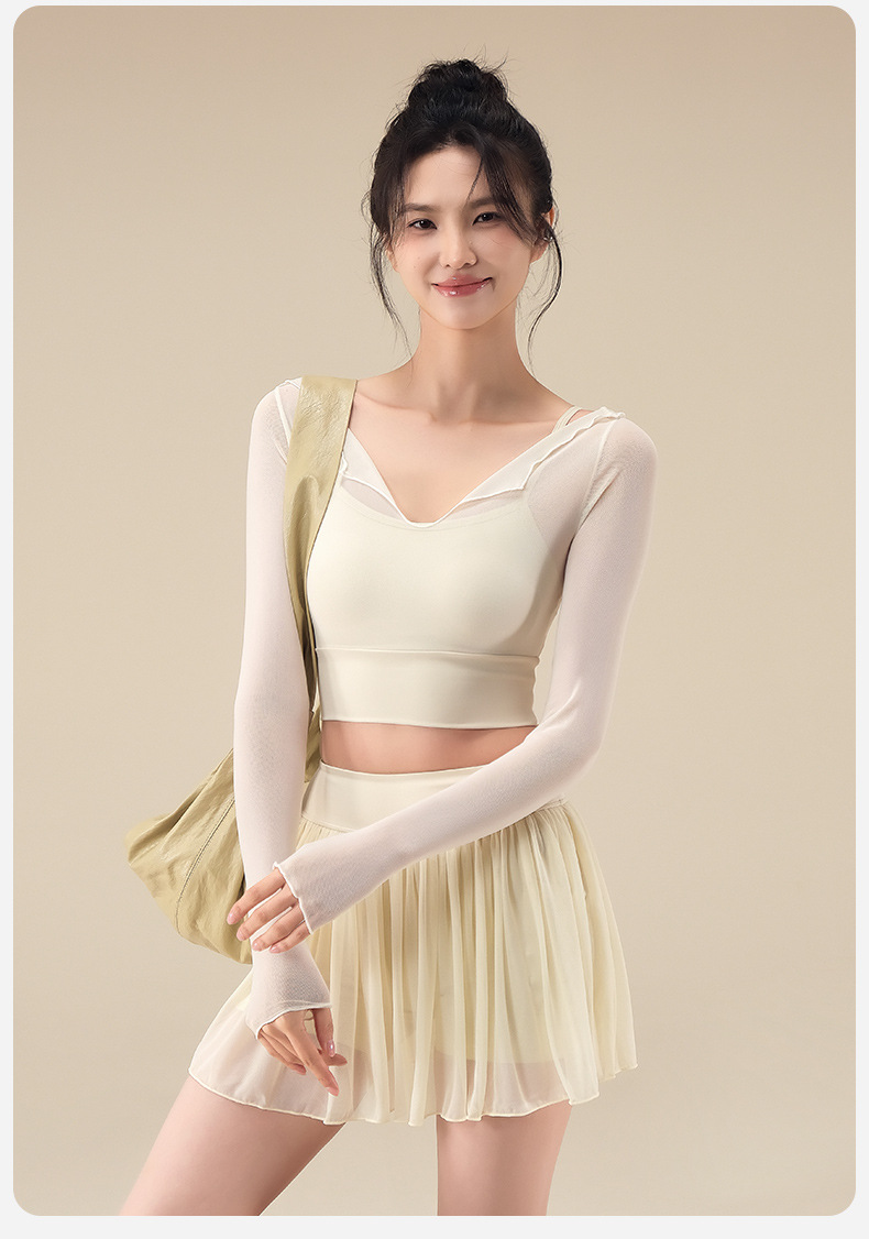 Autumn breathable yoga top with chest pad mesh gauze