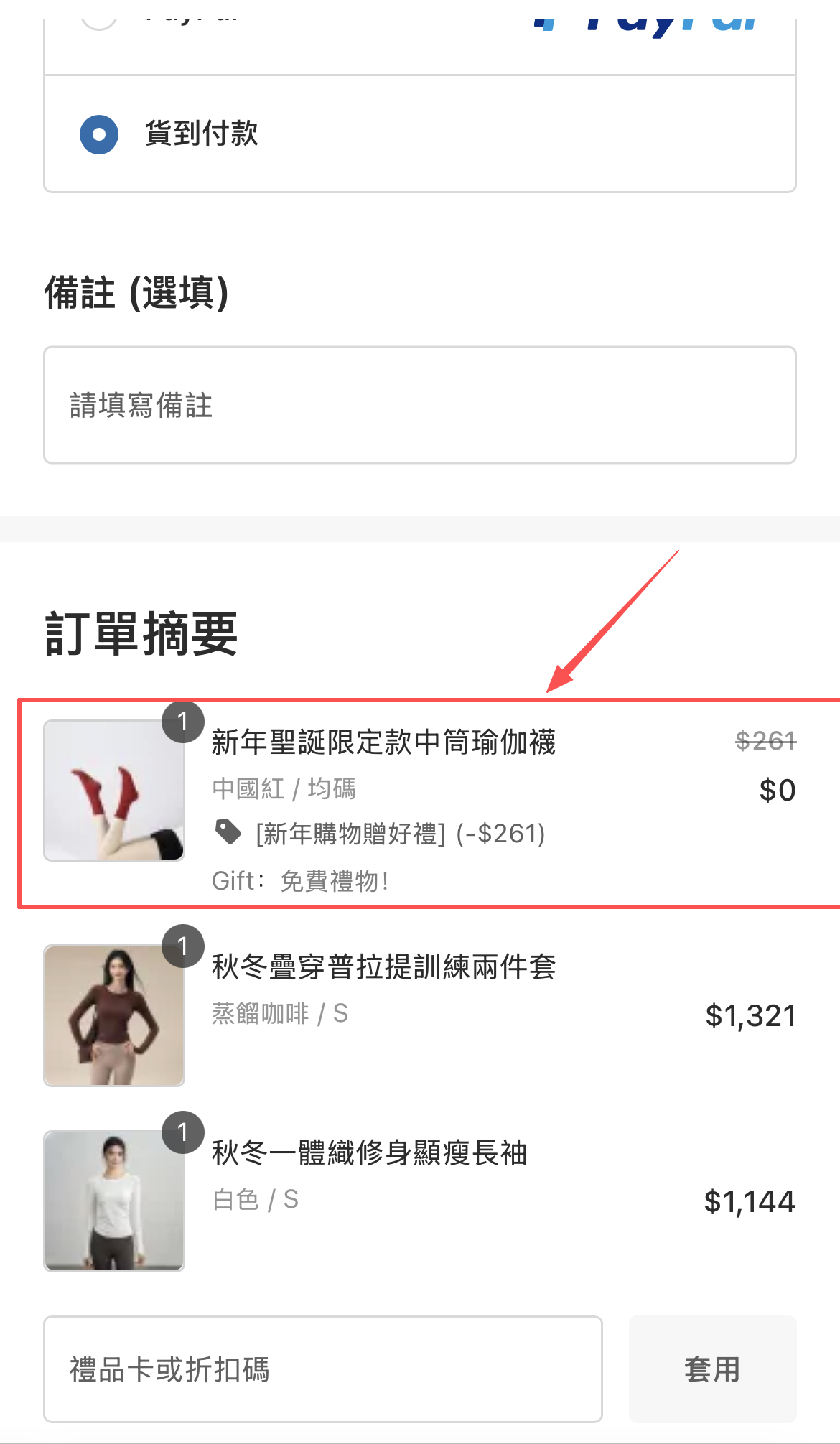 若要確認贈品是否已成功選取,請於結帳頁面查看訂單明細是否已包含您選擇的贈品。