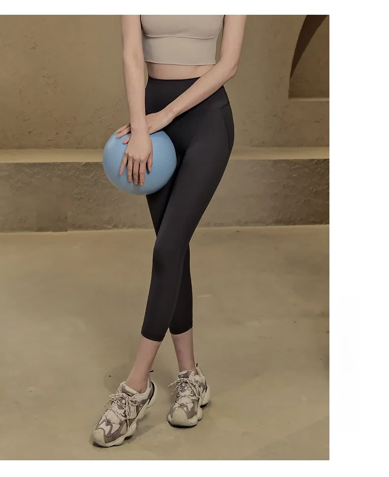 裸感高腰提臀瑜伽緊身七分褲
