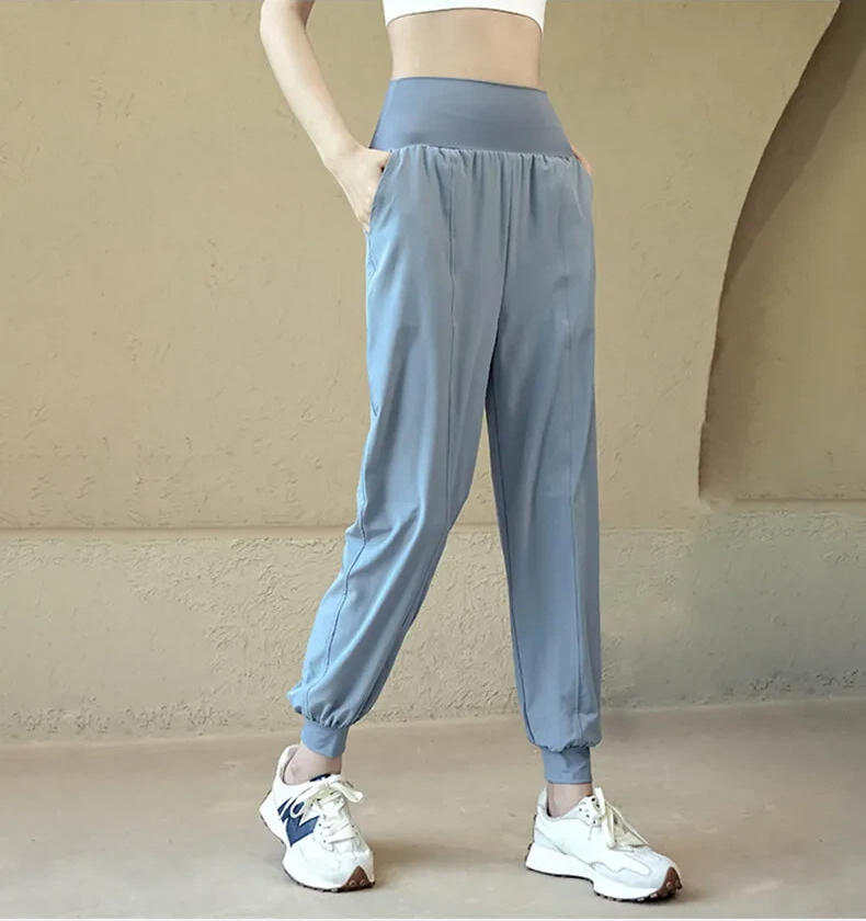 寛鬆速乾高腰休閒長褲