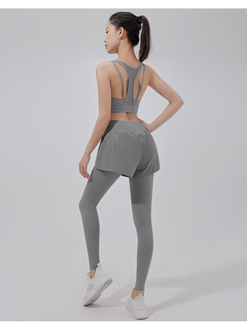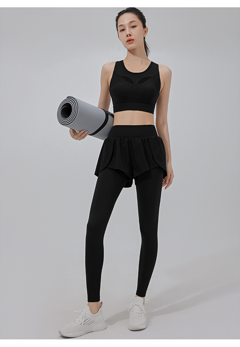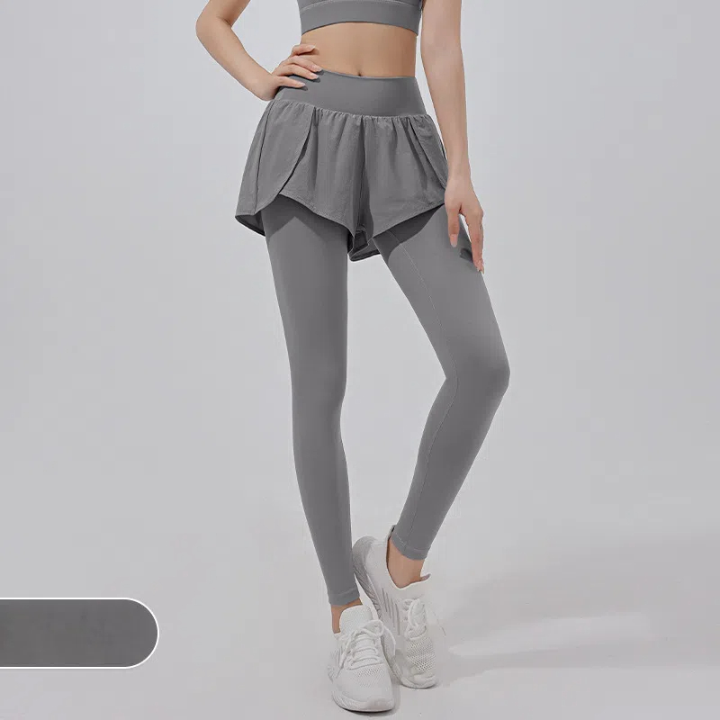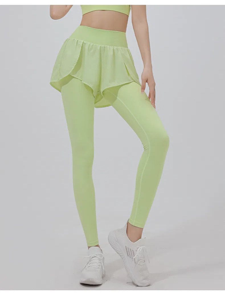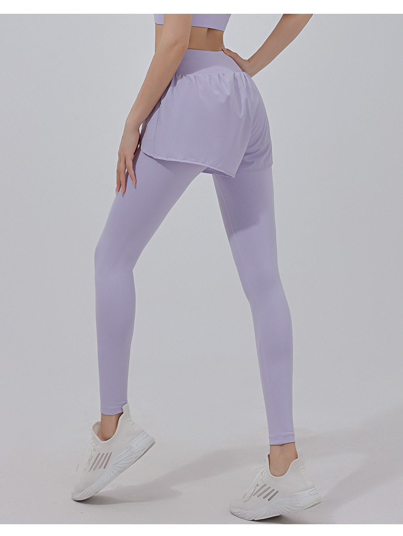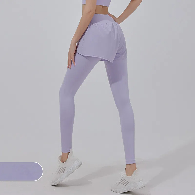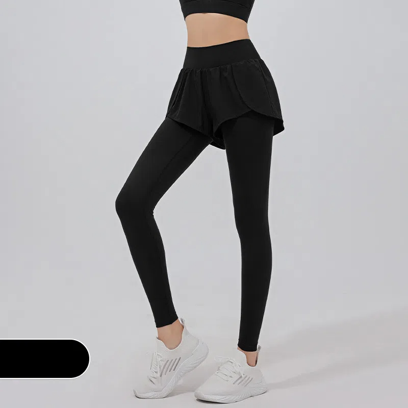 高彈力假兩件顯瘦緊身跑步訓練健身長褲