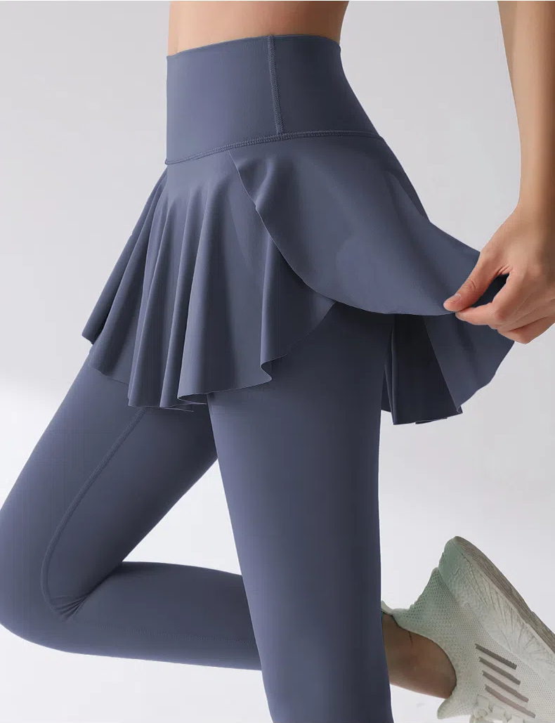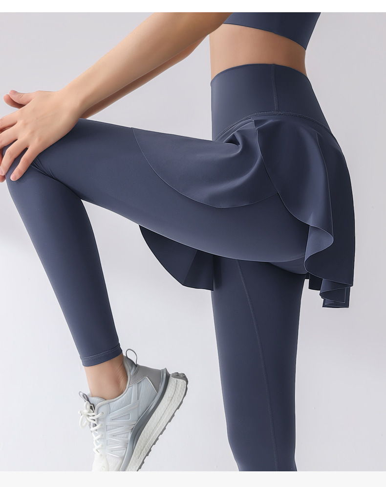 高腰提臀速幹透氣裙擺假兩件跑步健身運動長褲
