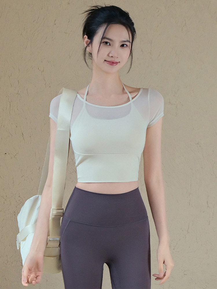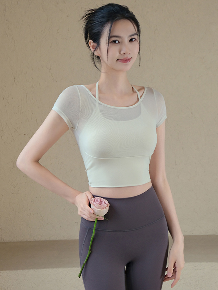 網紗帶胸墊芭蕾風短袖