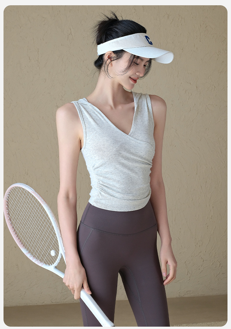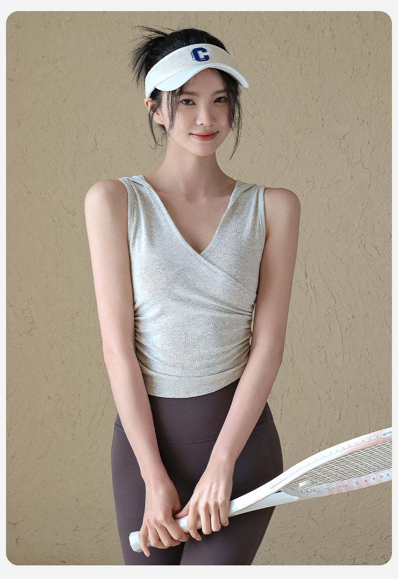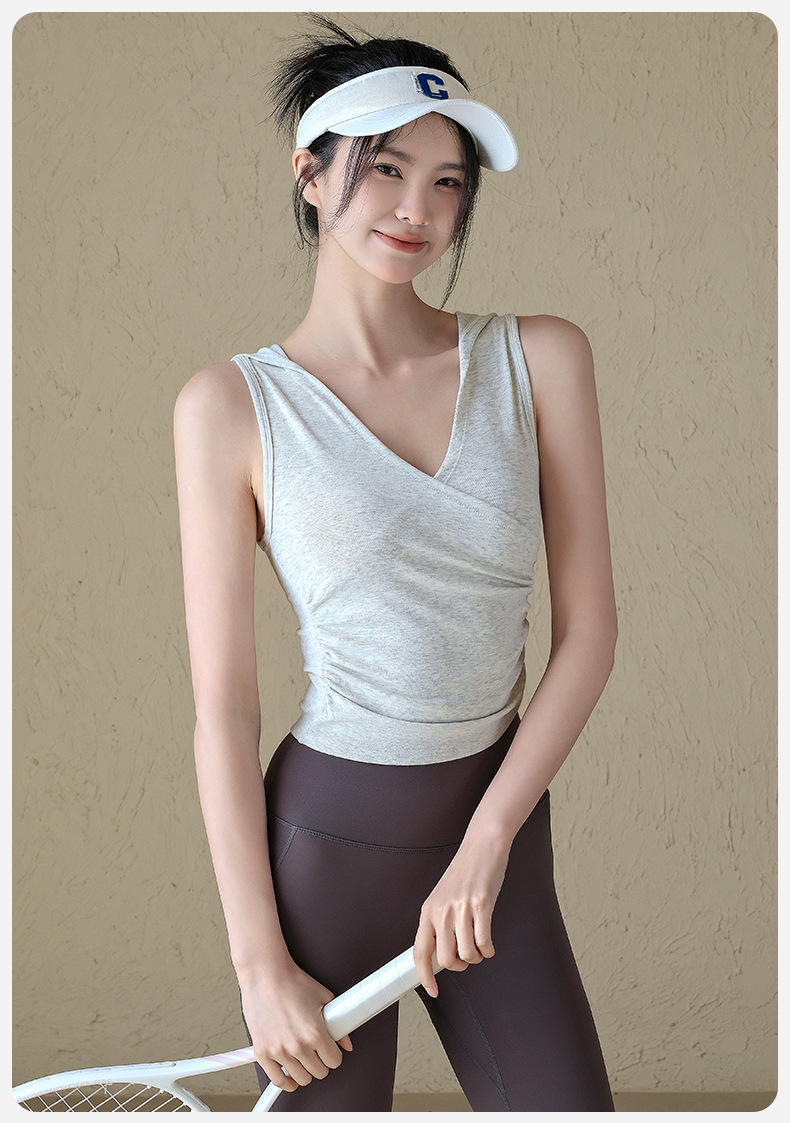 連帽V領無袖休閒跑步運動健身背心T恤罩衫短袖