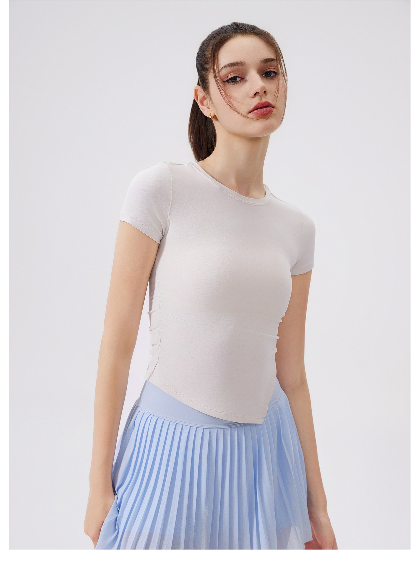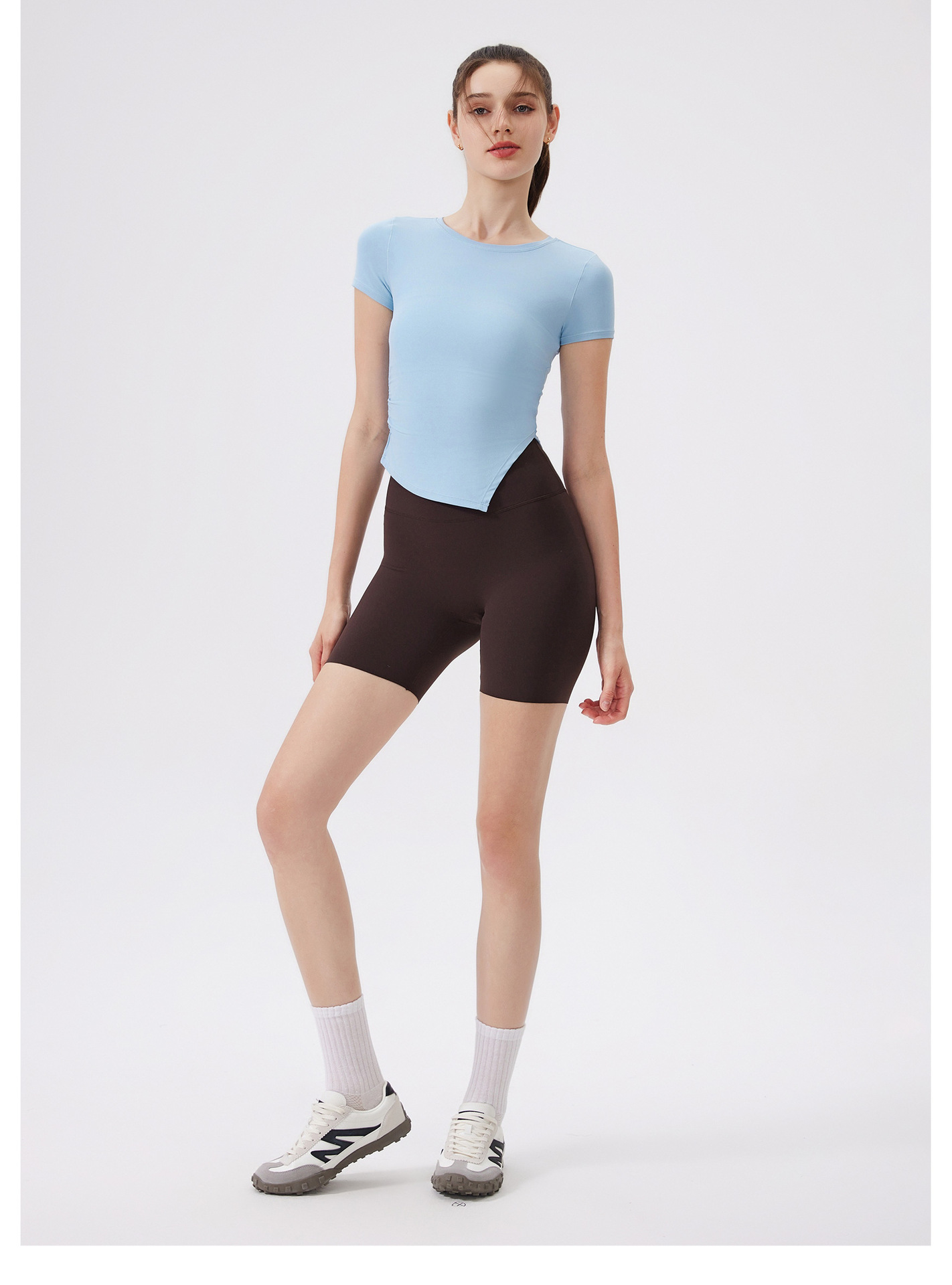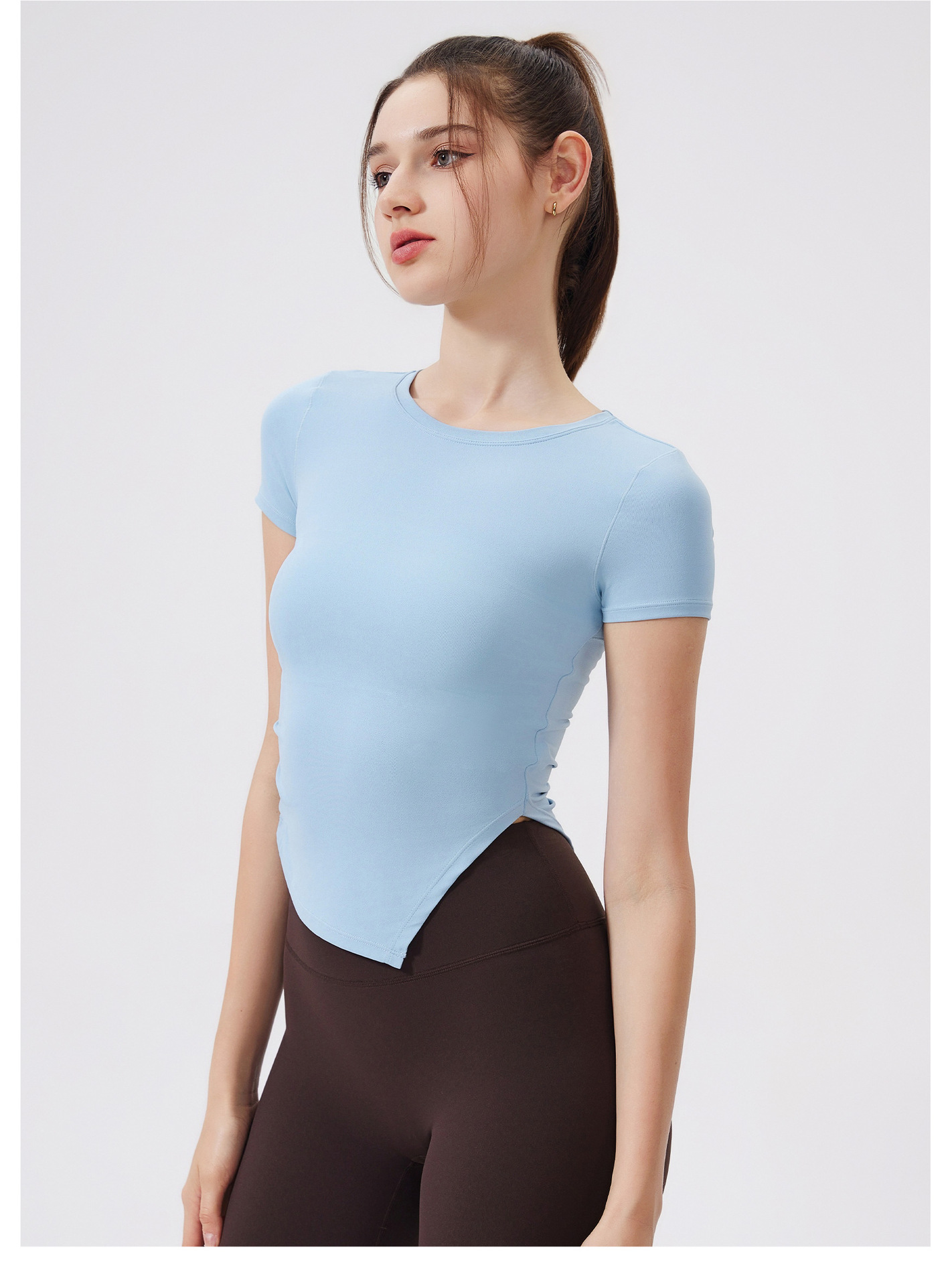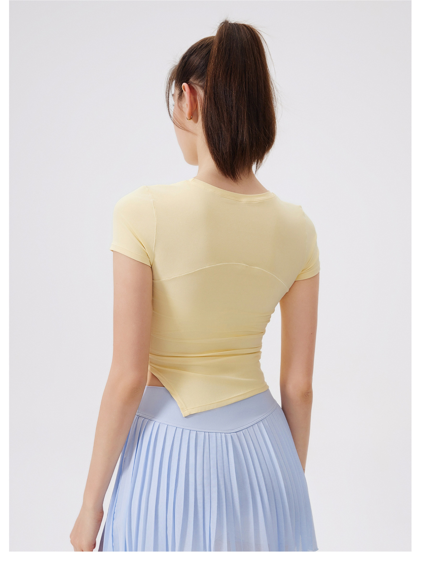 涼感透氣抗菌不對稱收腰運動跑步訓練短袖