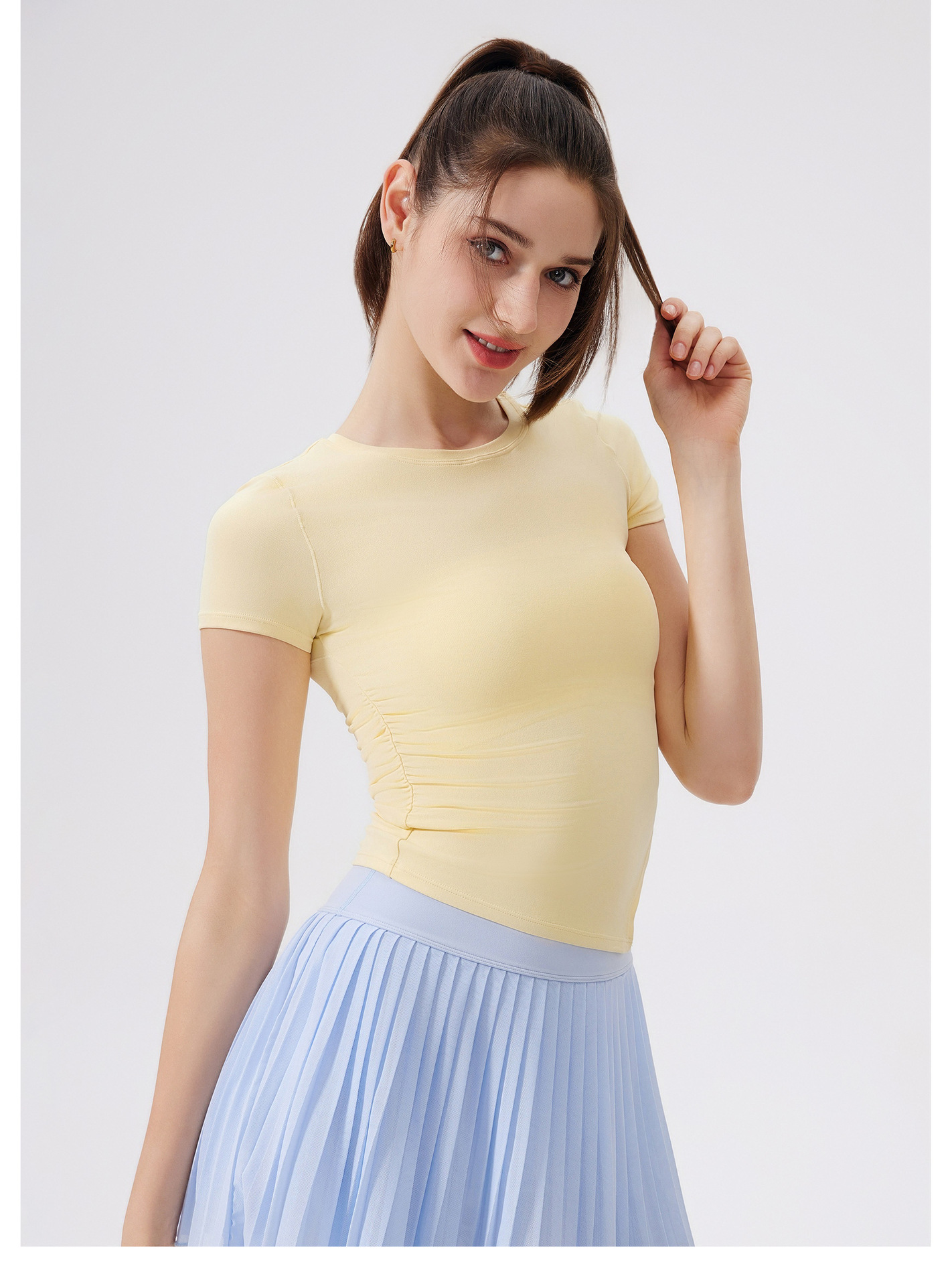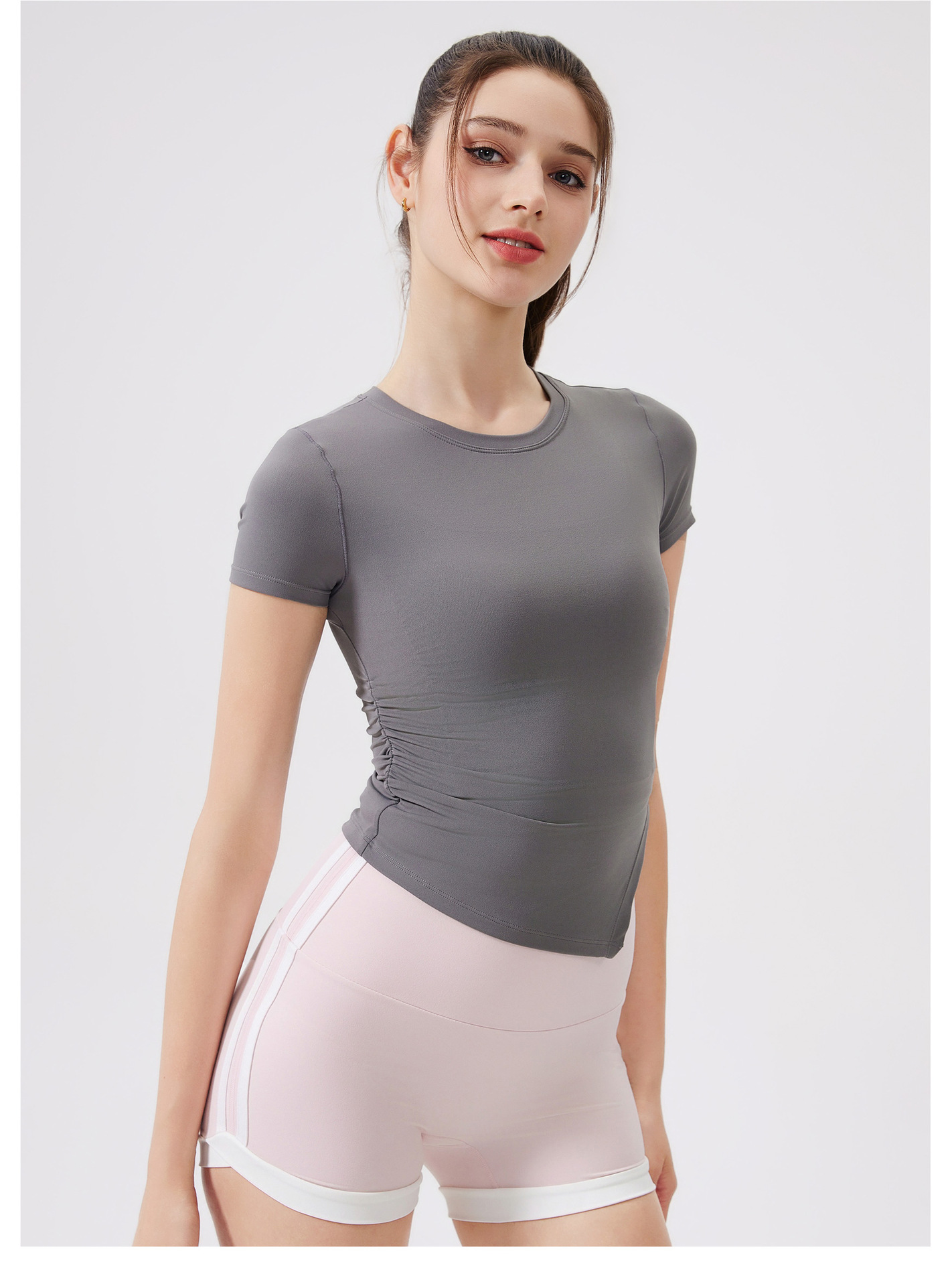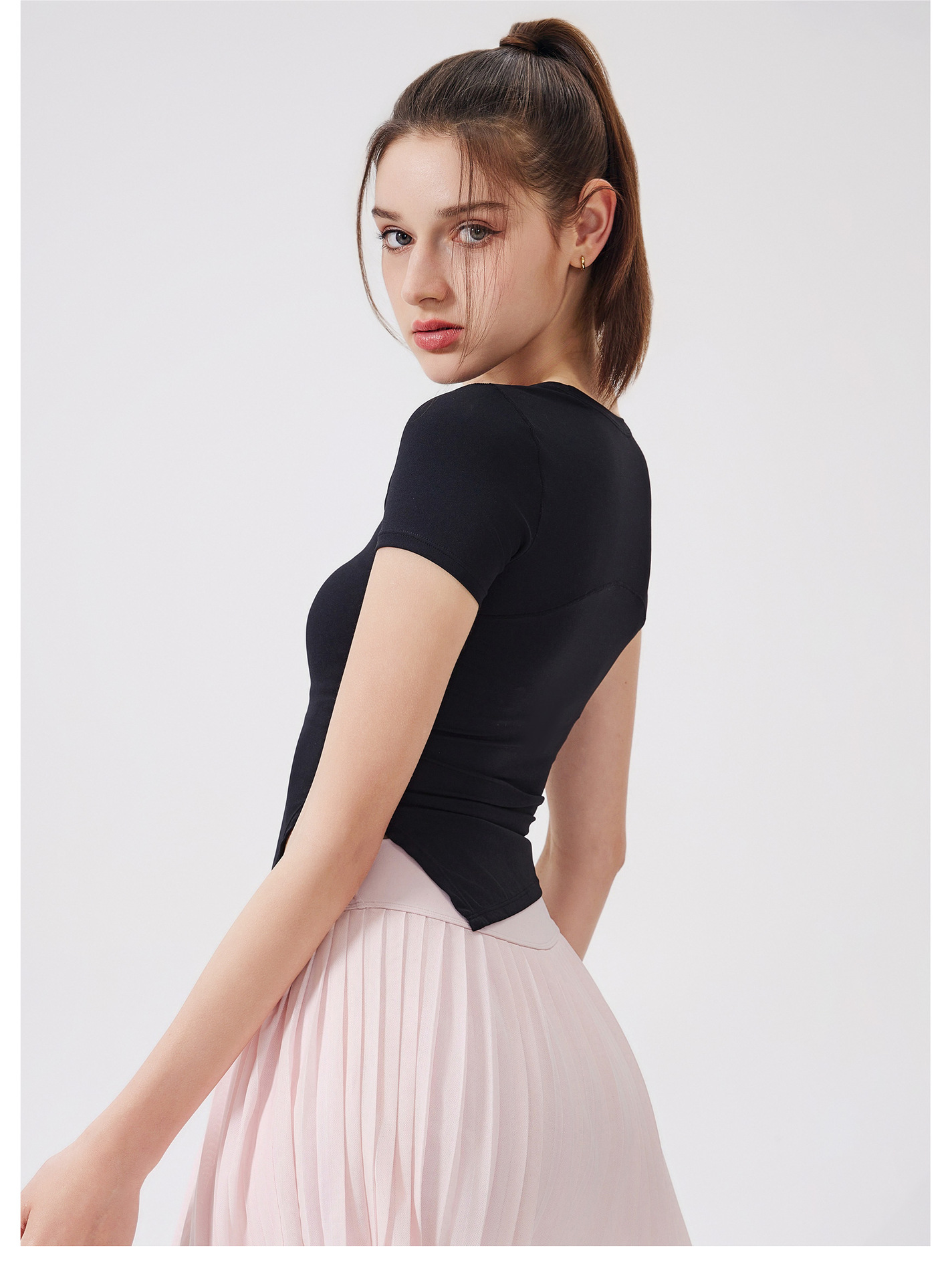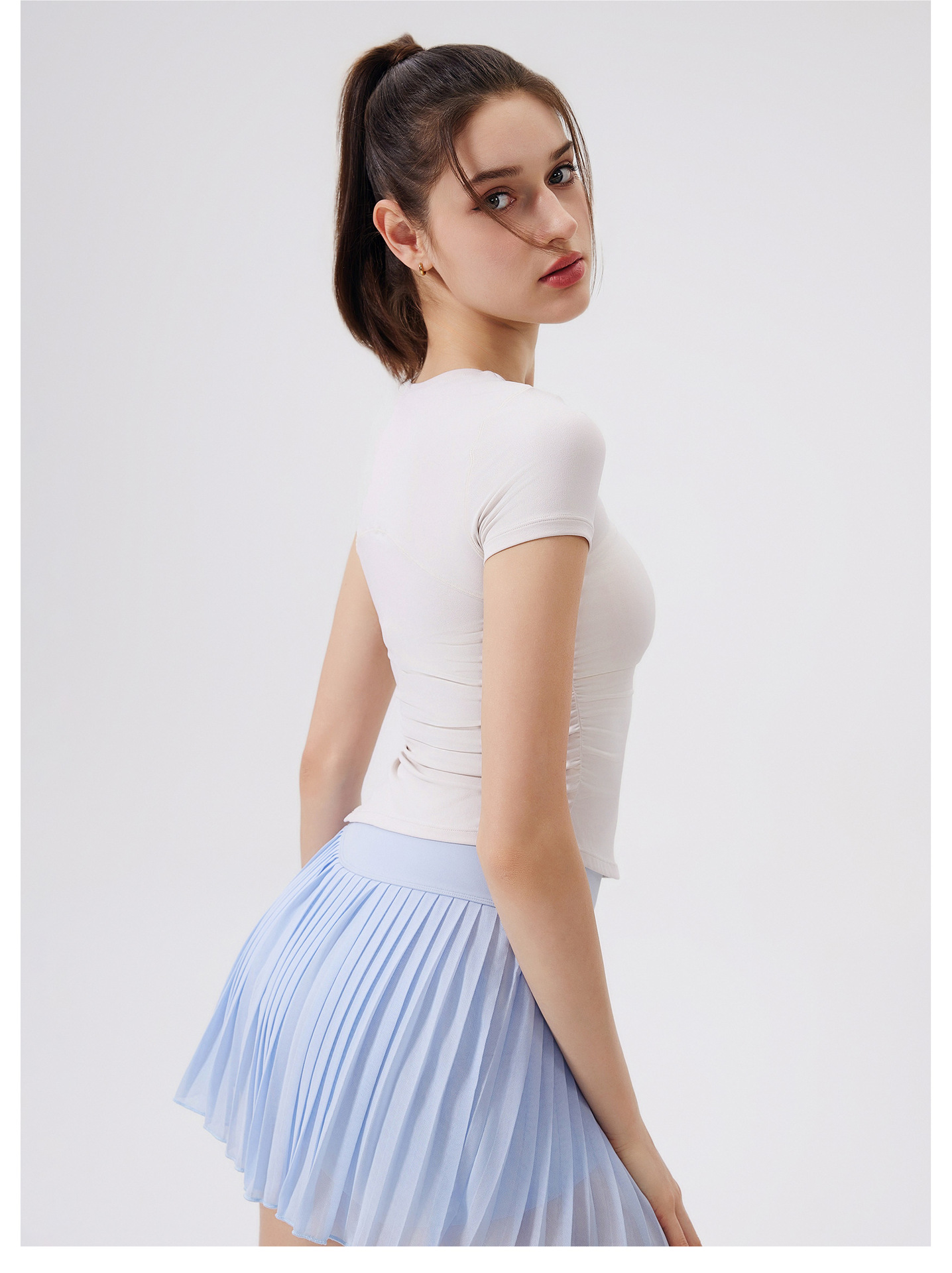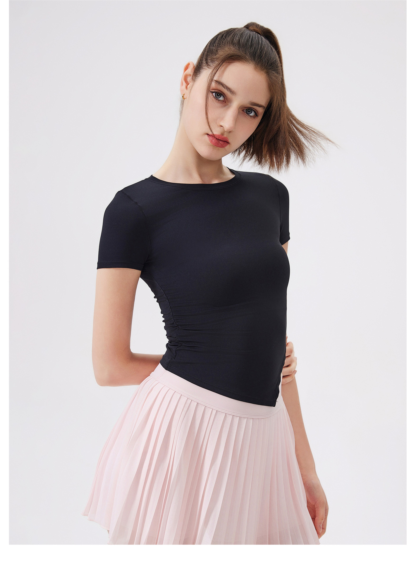 涼感透氣抗菌不對稱收腰運動跑步訓練短袖