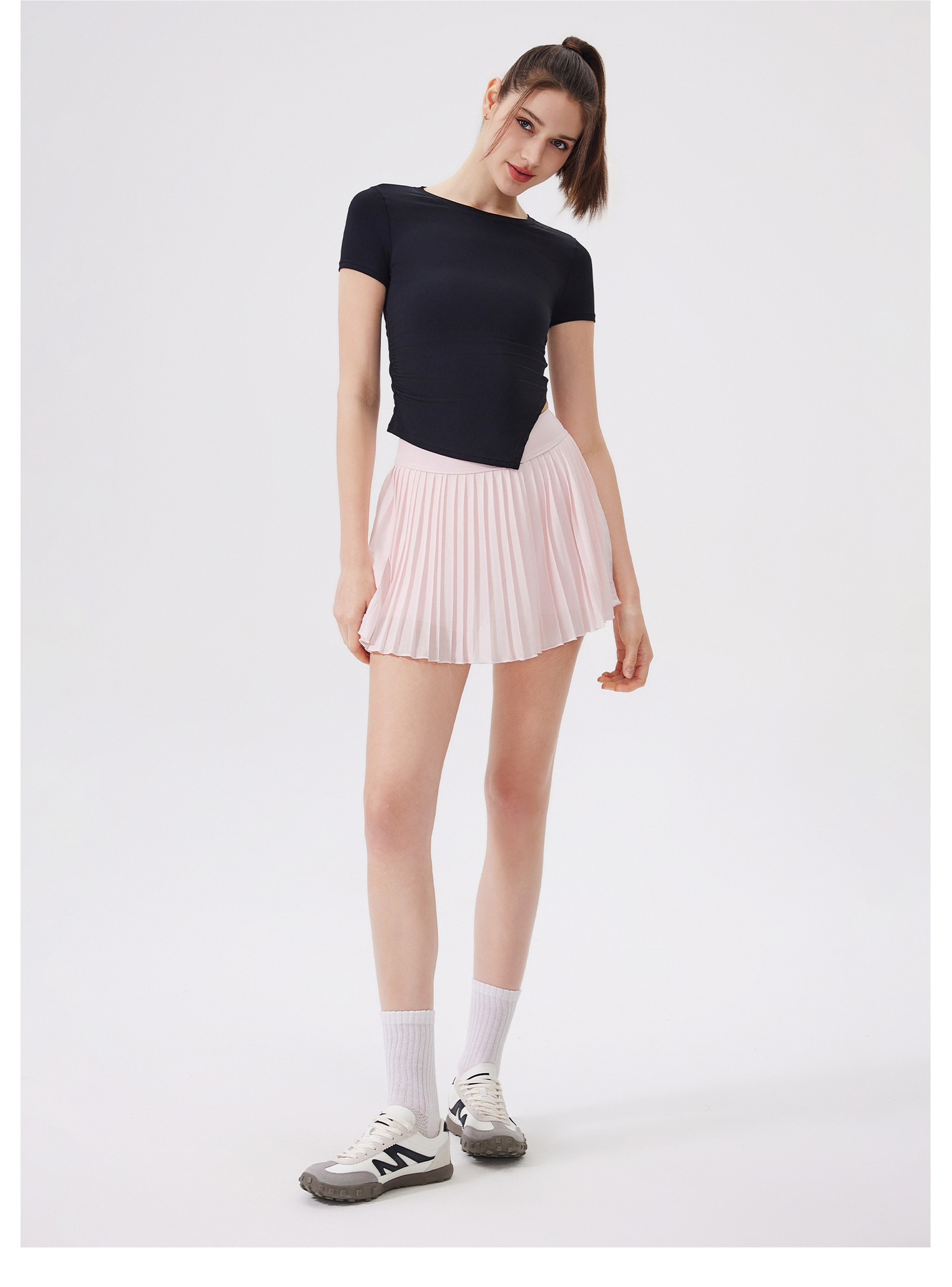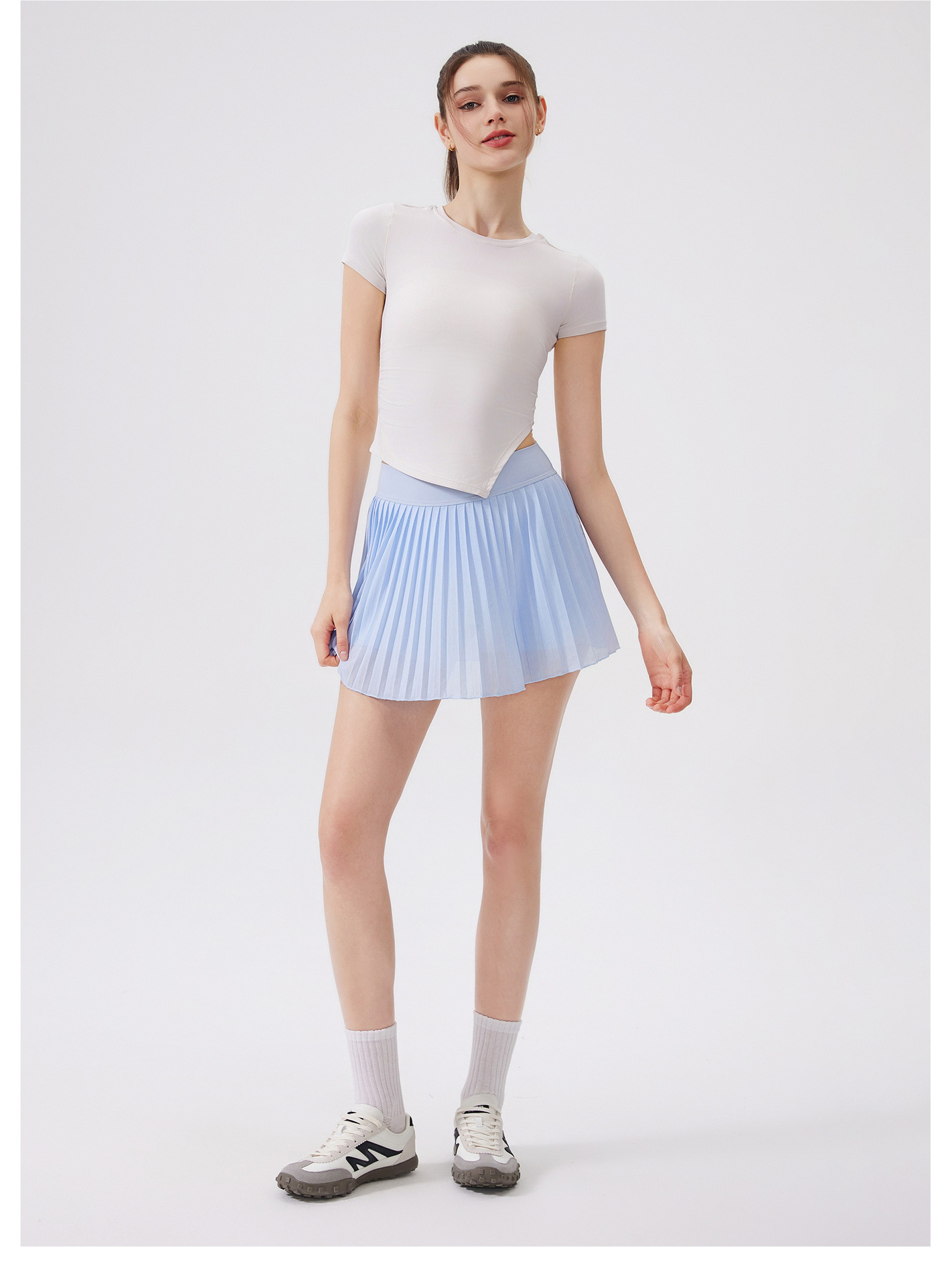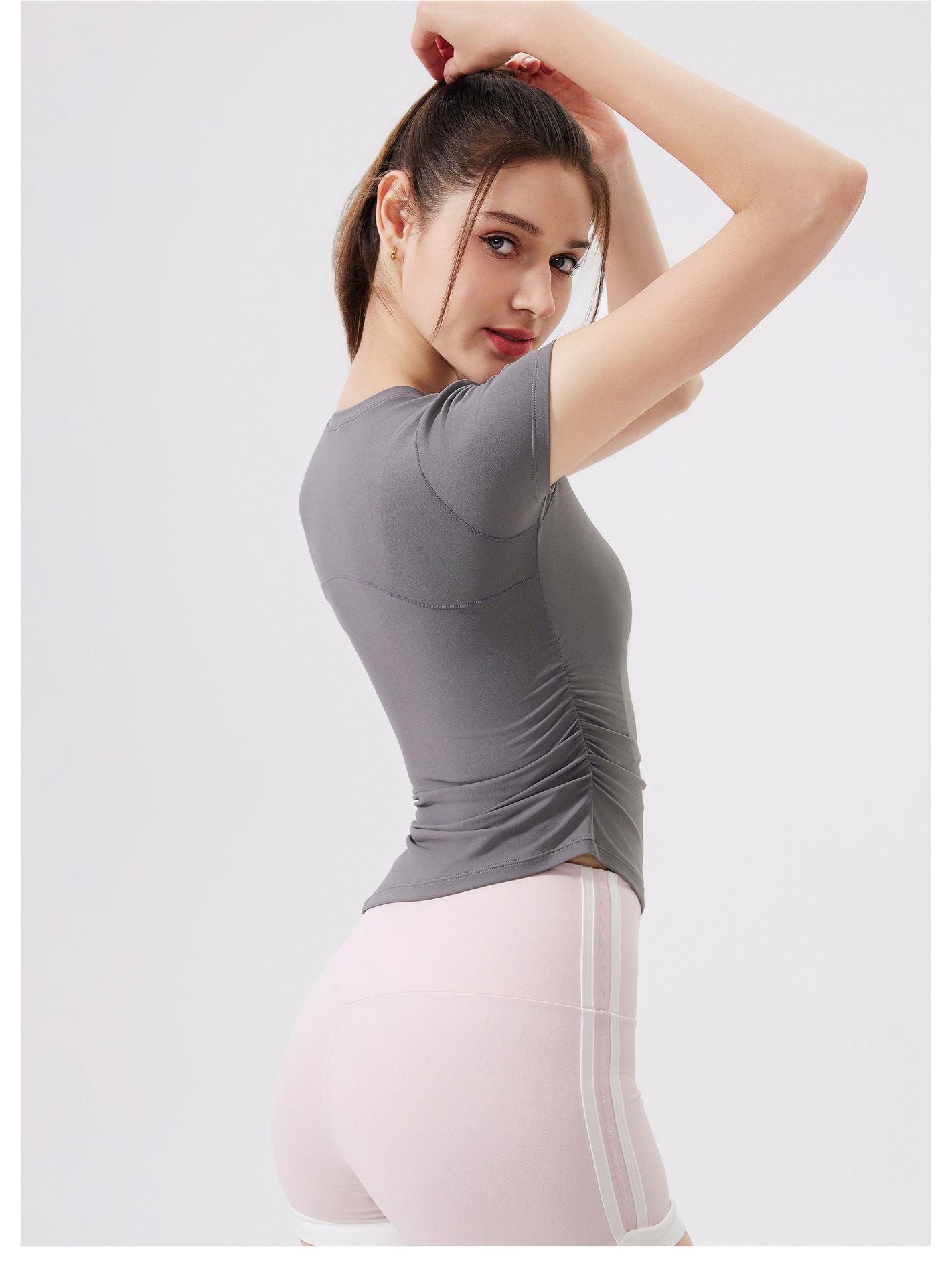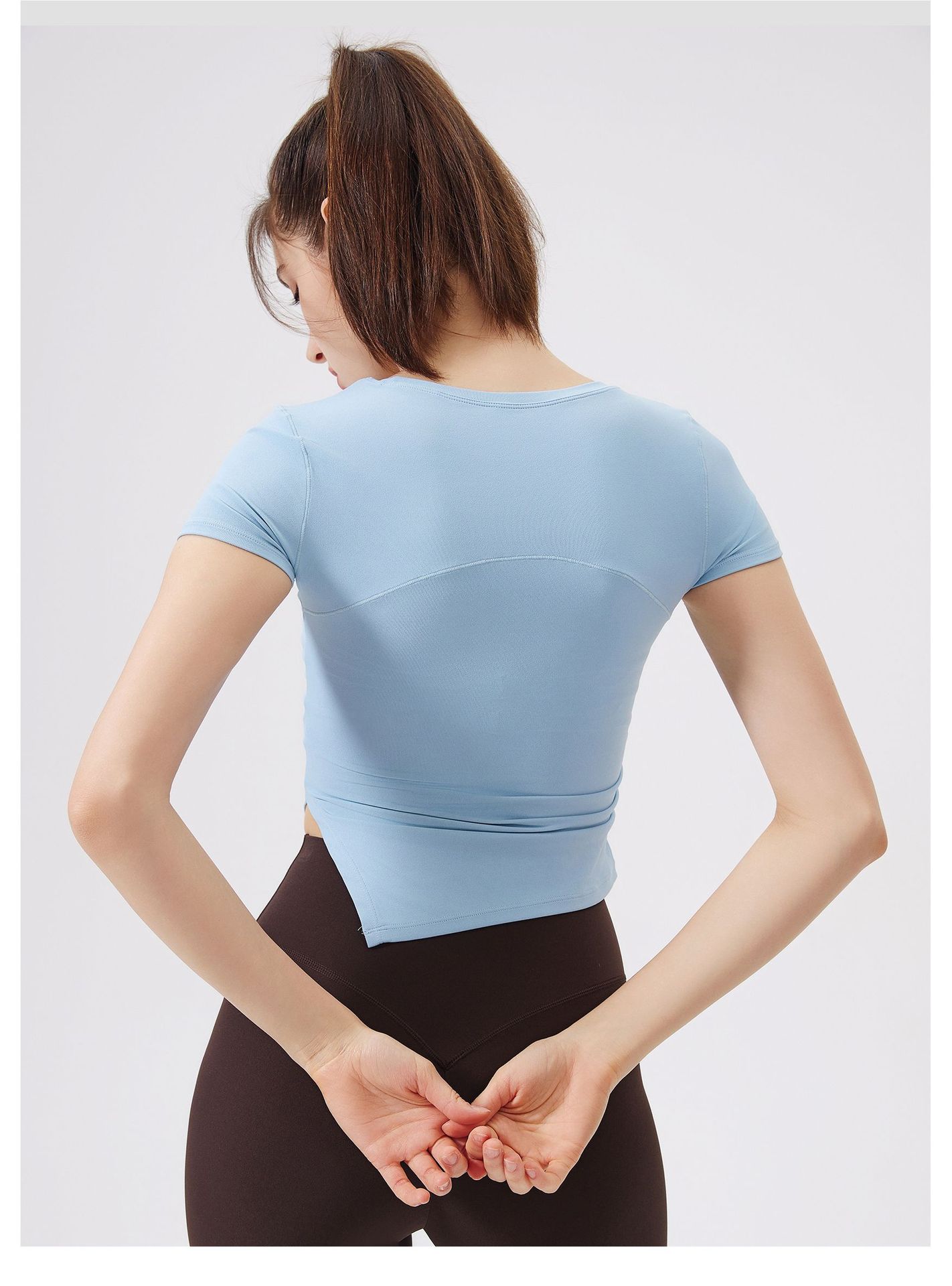 涼感透氣抗菌不對稱收腰運動跑步訓練短袖