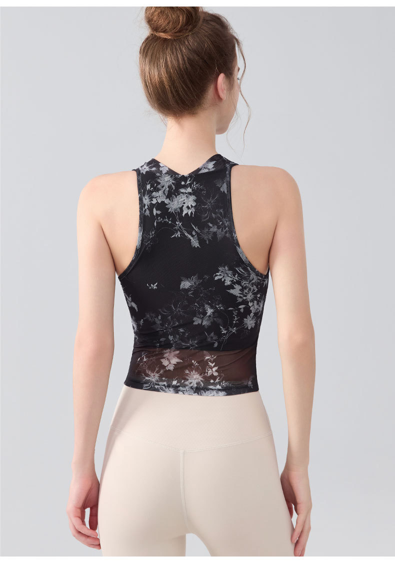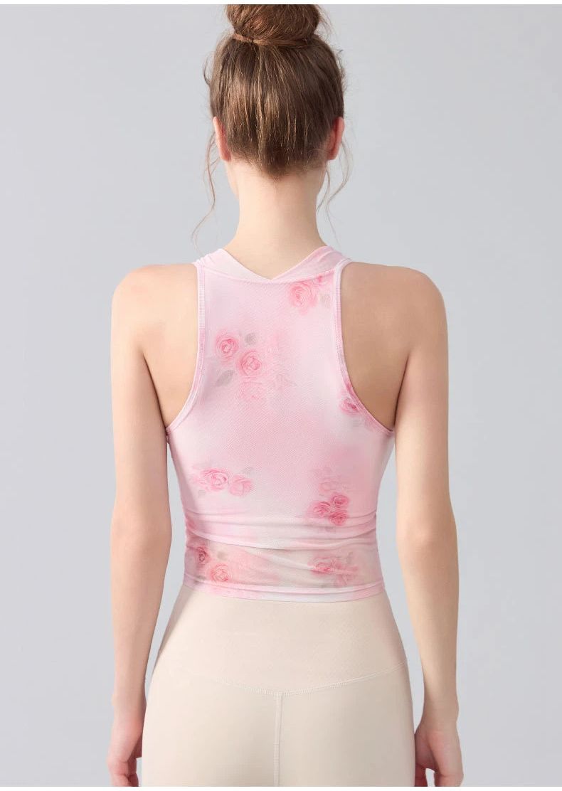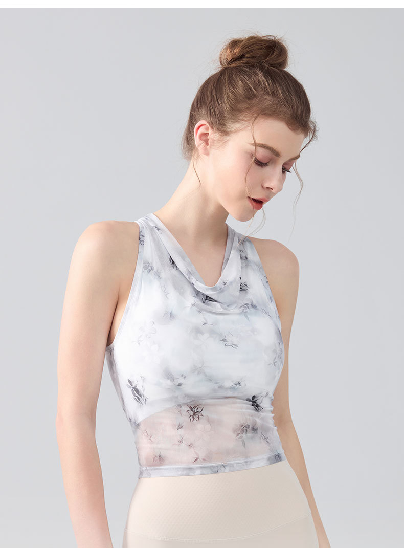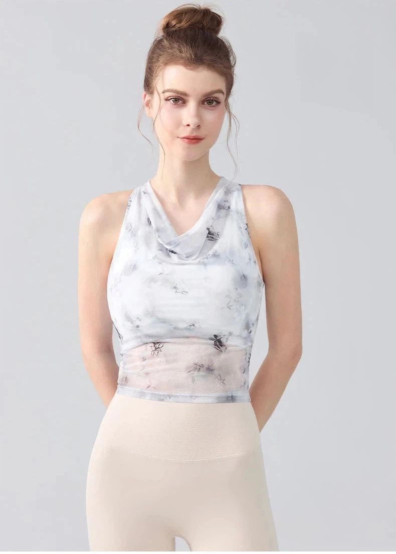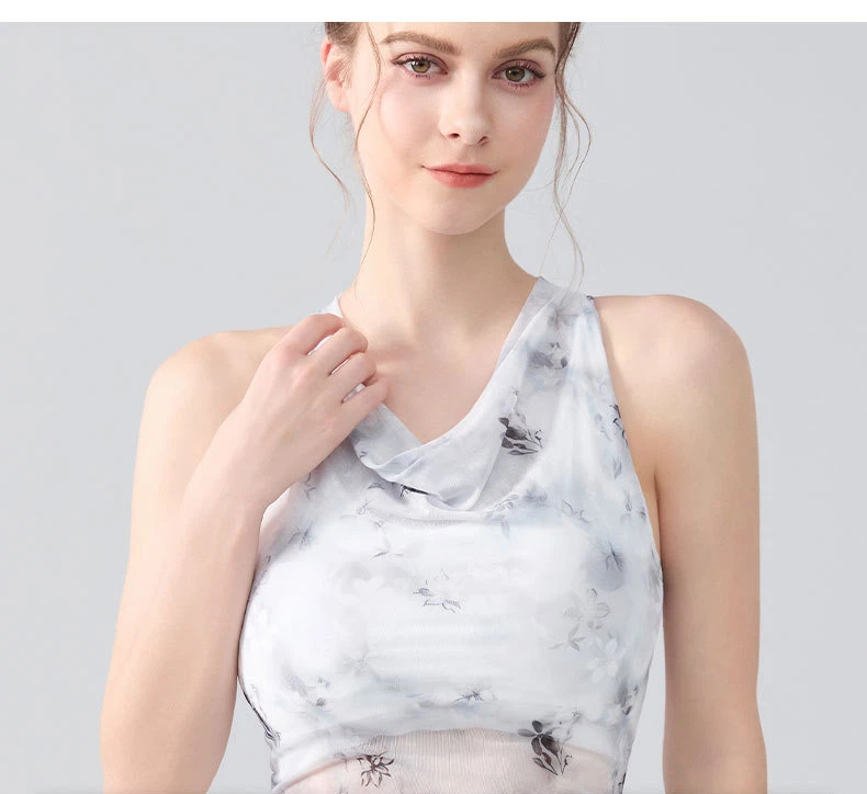 扎染印花蕩領掛脖運動背心