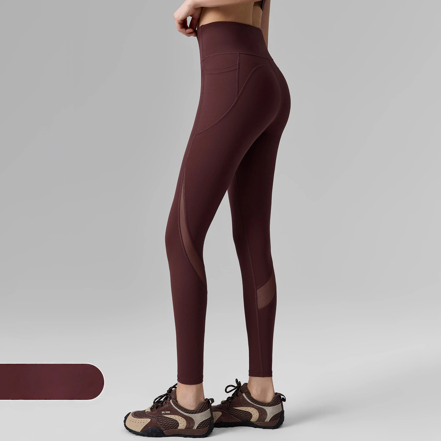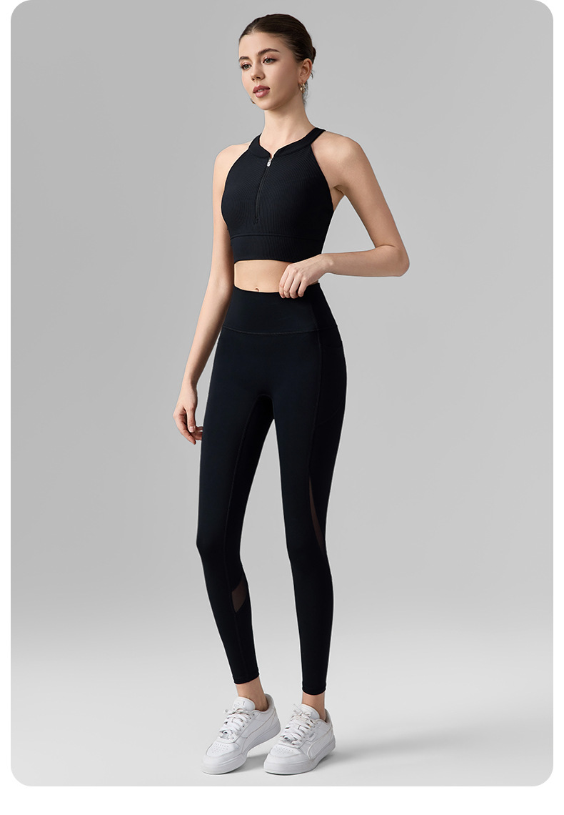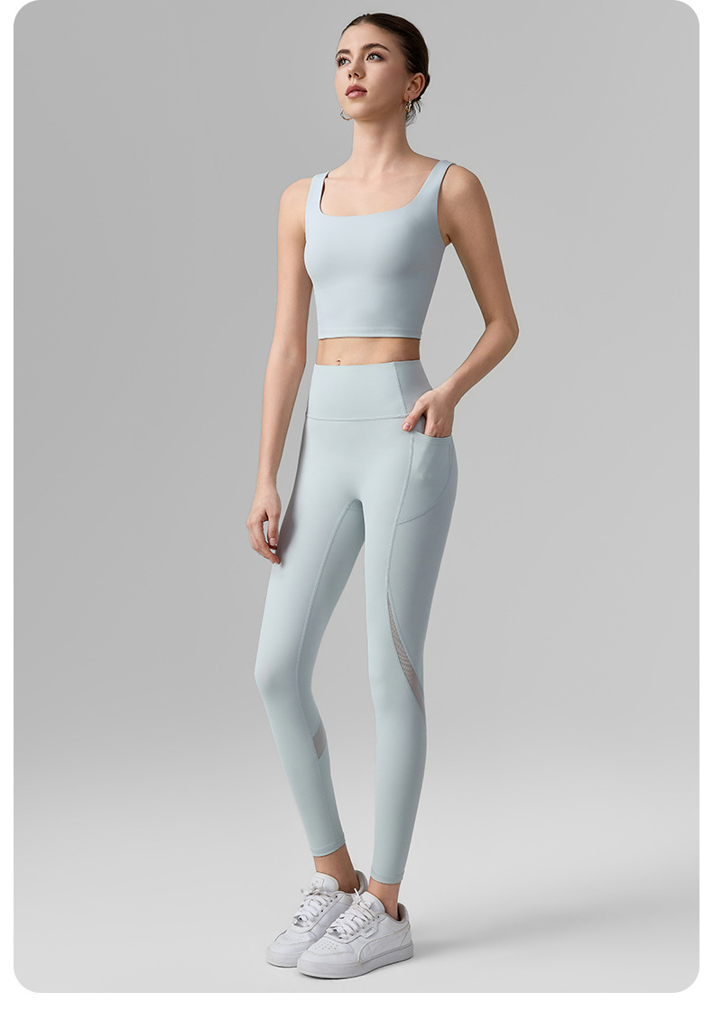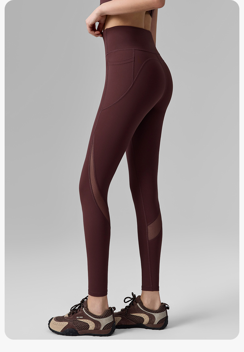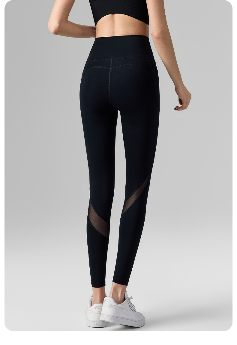 網紗無T線帶口袋防捲邊提臀運動緊身褲