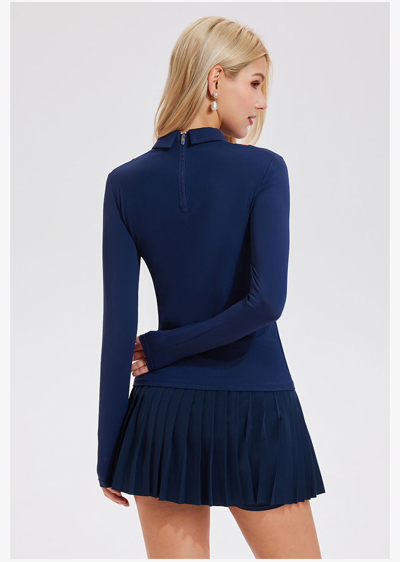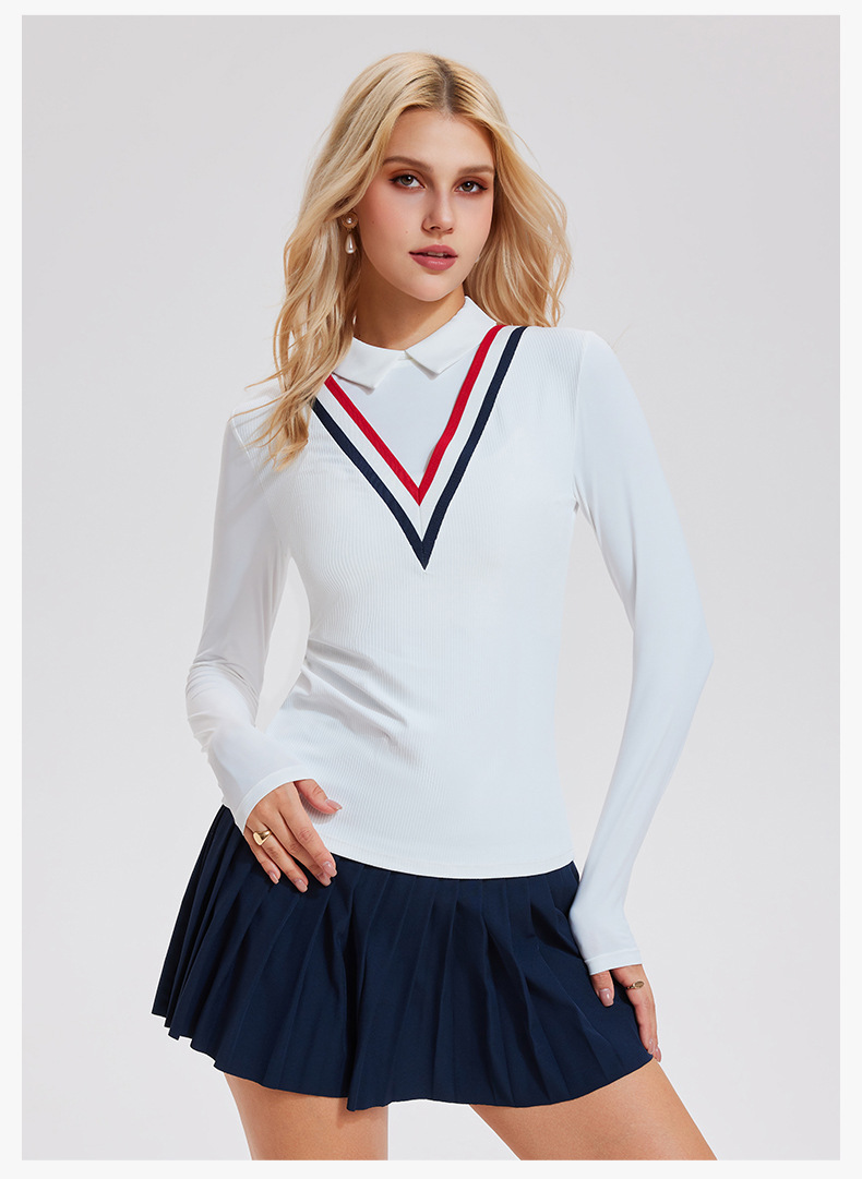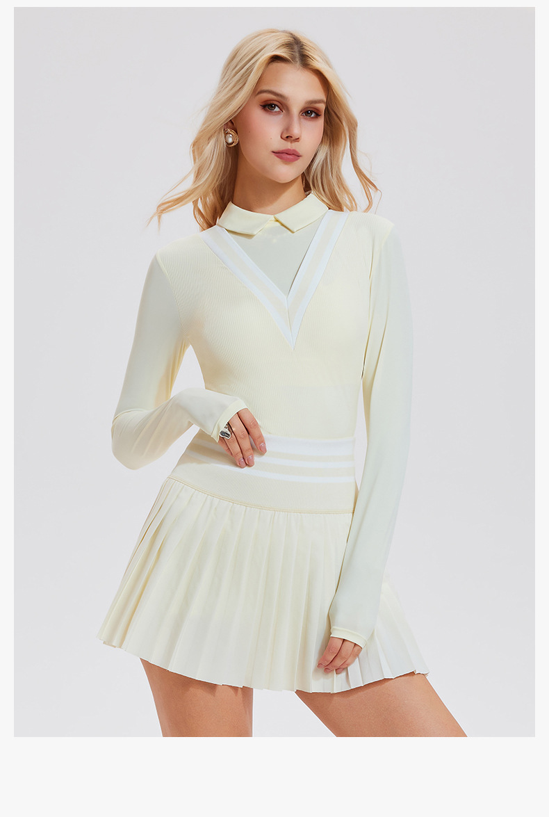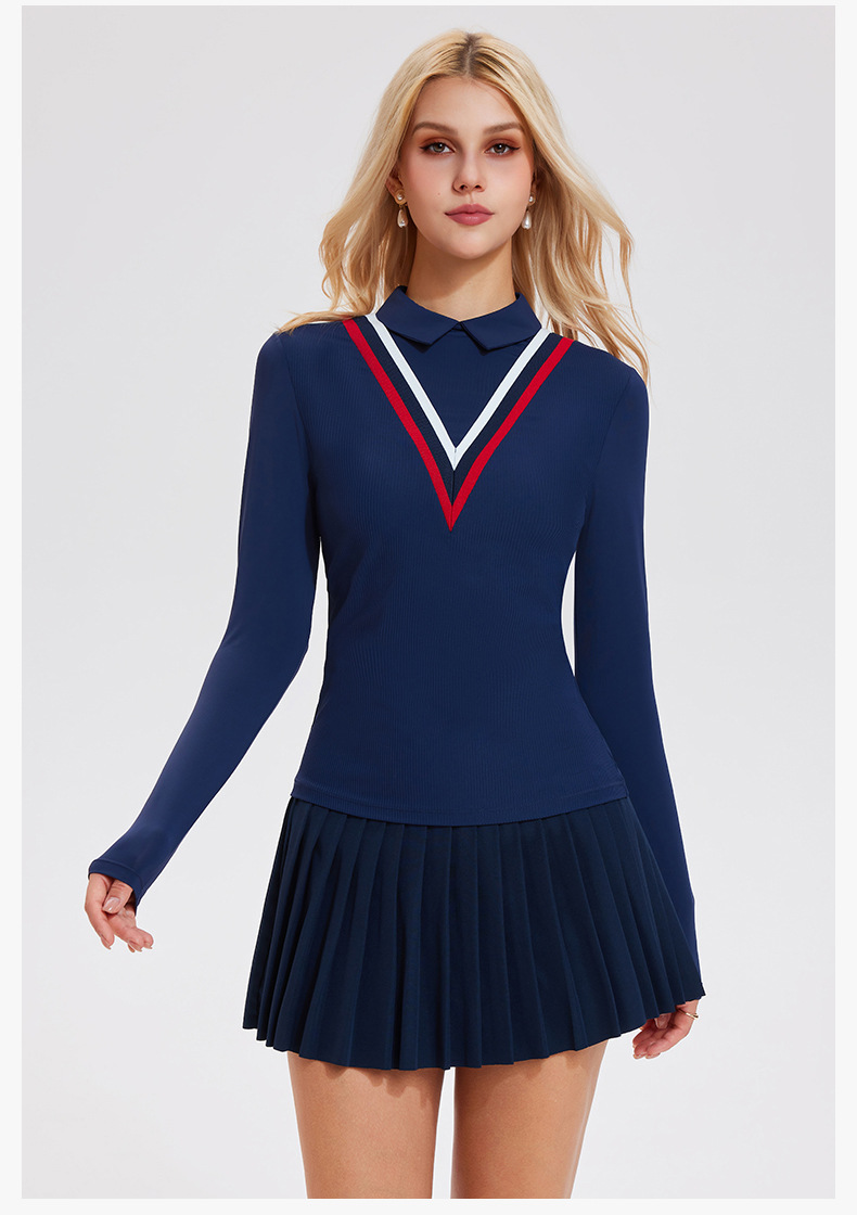 翻領速幹假兩件運動健身高爾夫上衣
