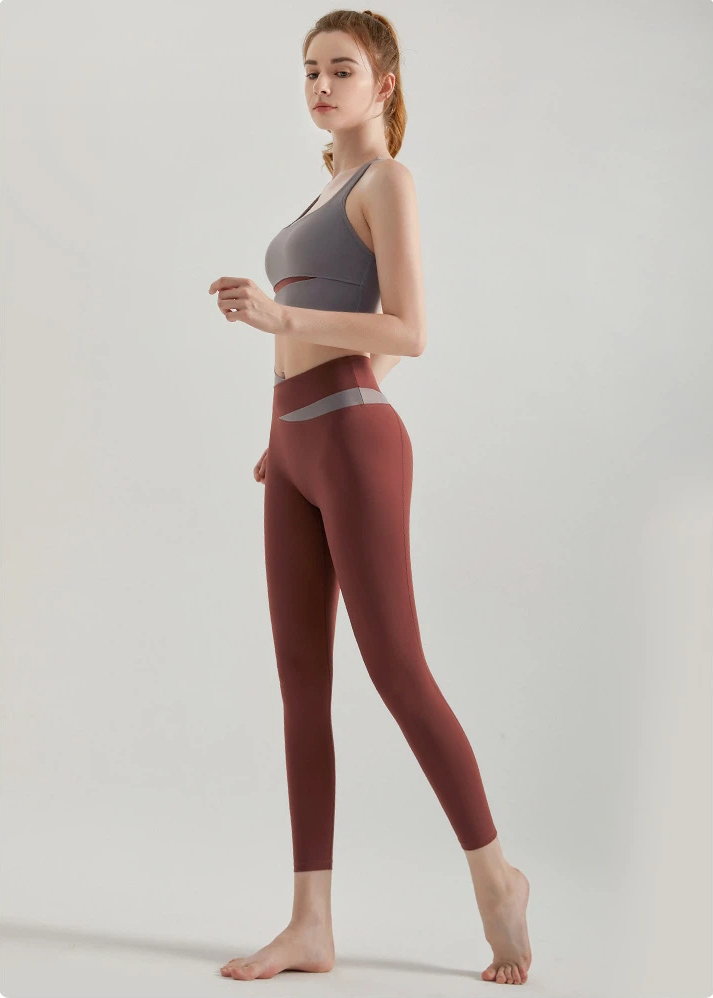 拼色交叉腰緊身褲