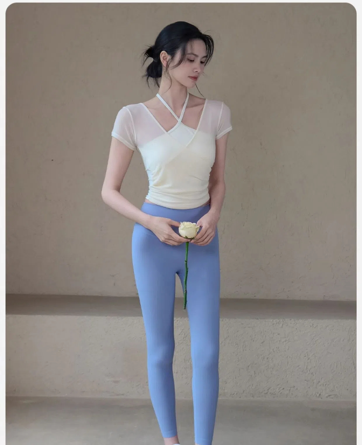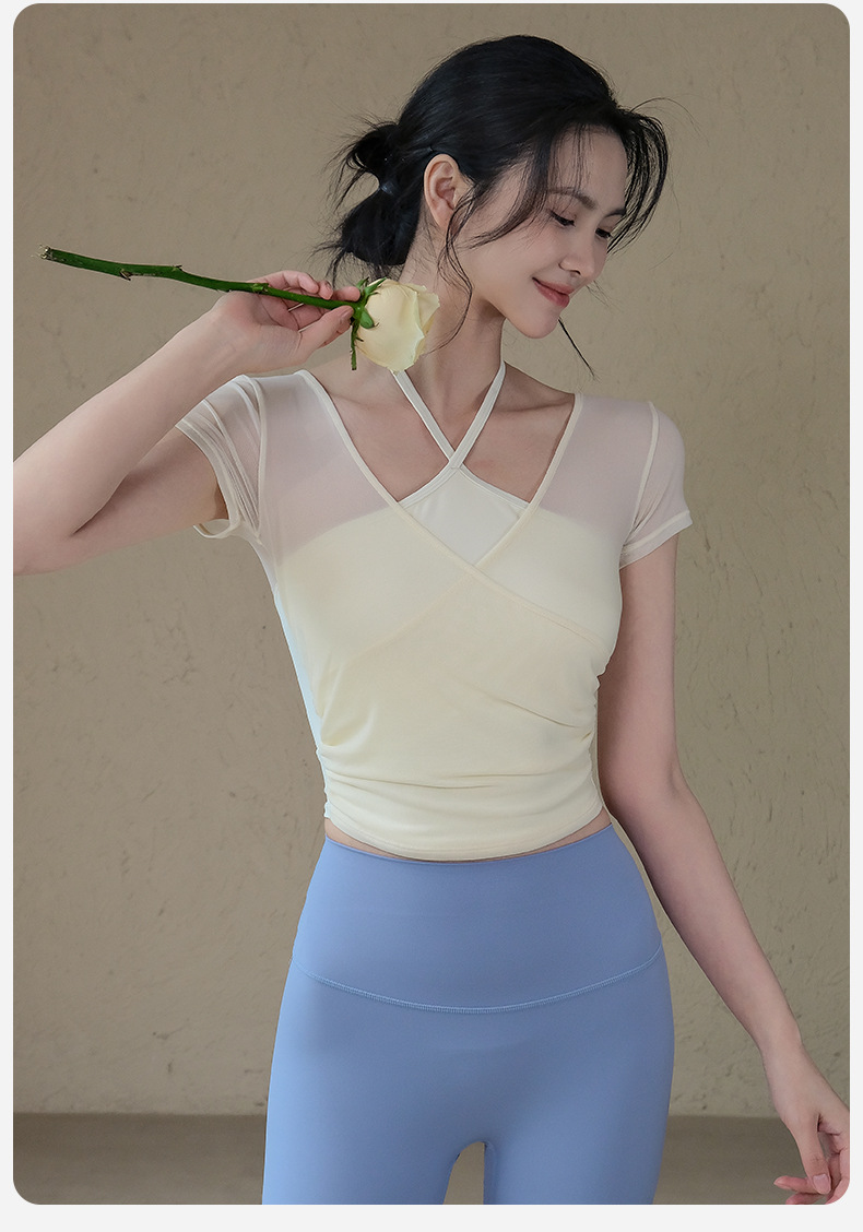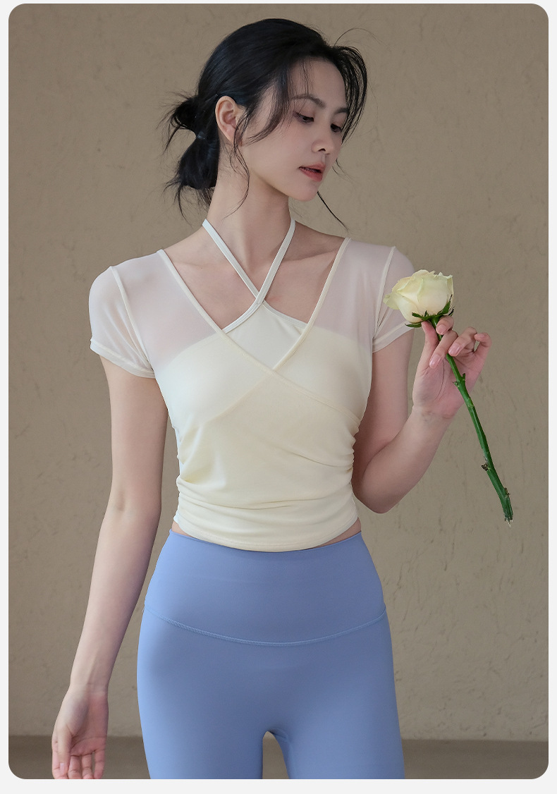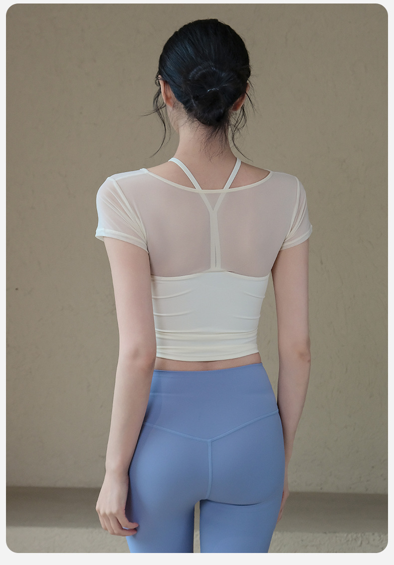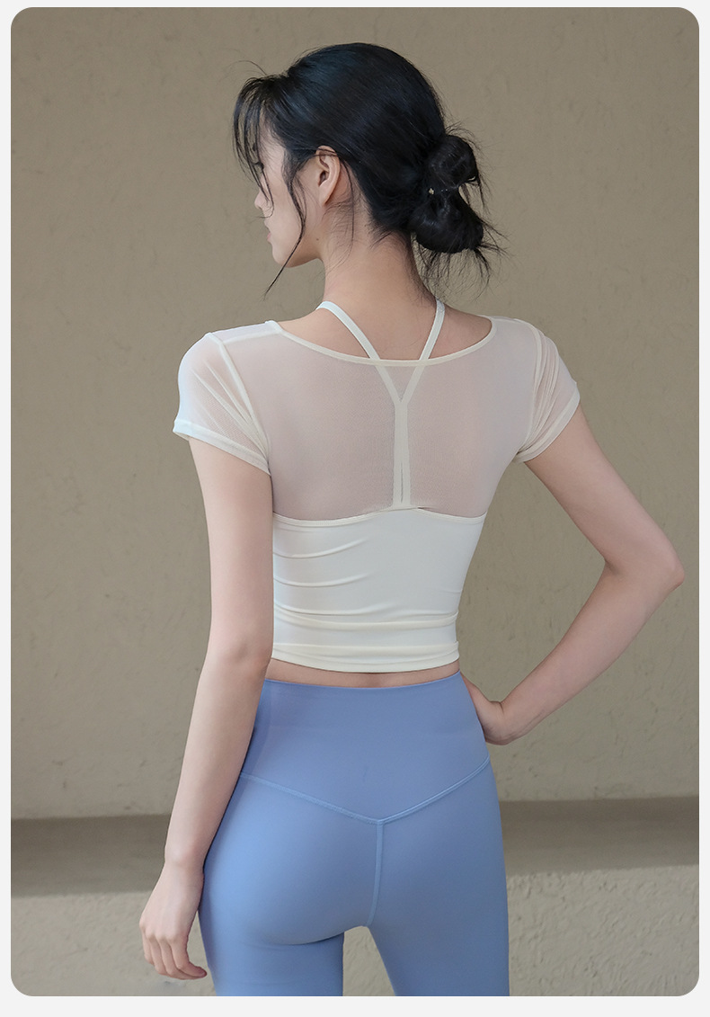 收腰顯瘦氣質透氣網紗健身訓練運動短袖