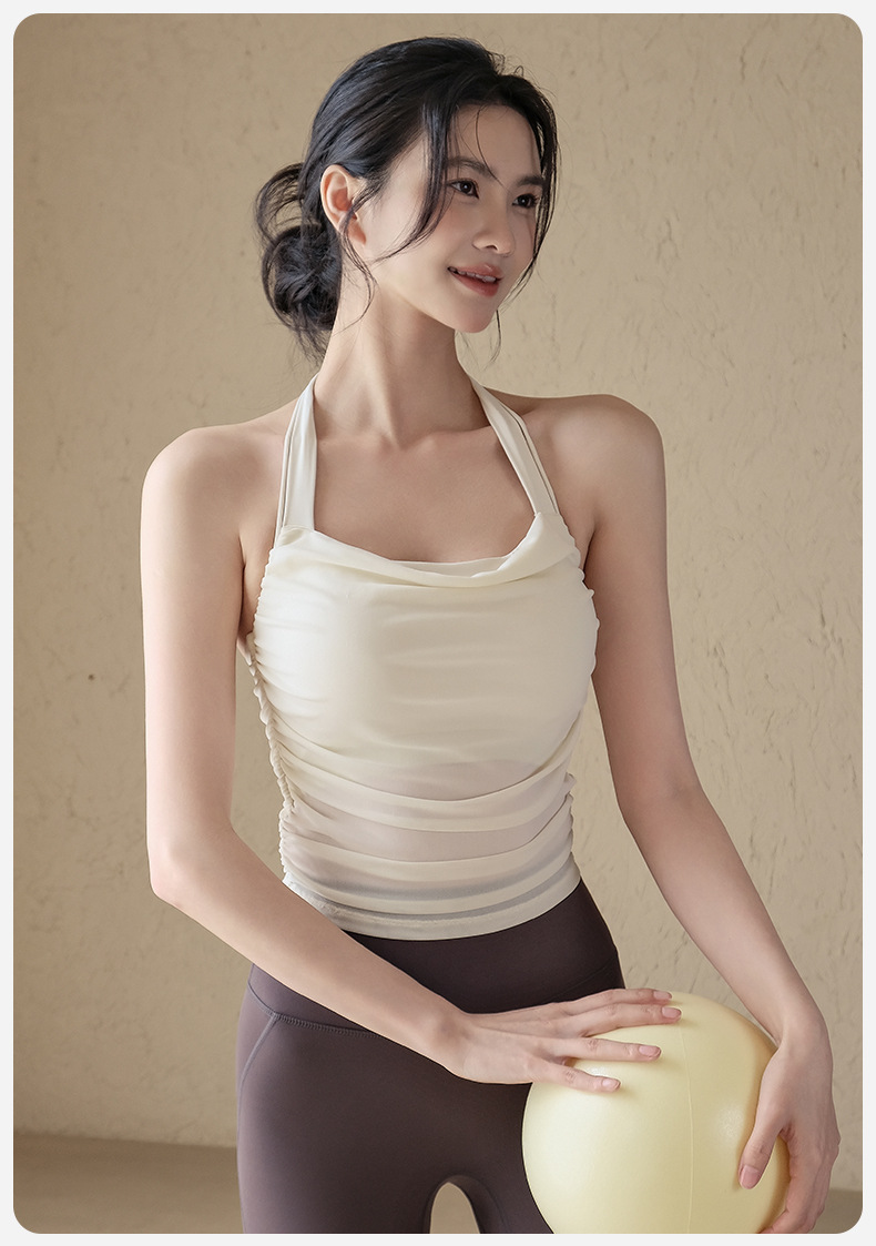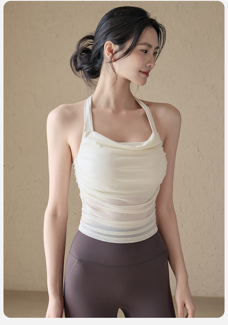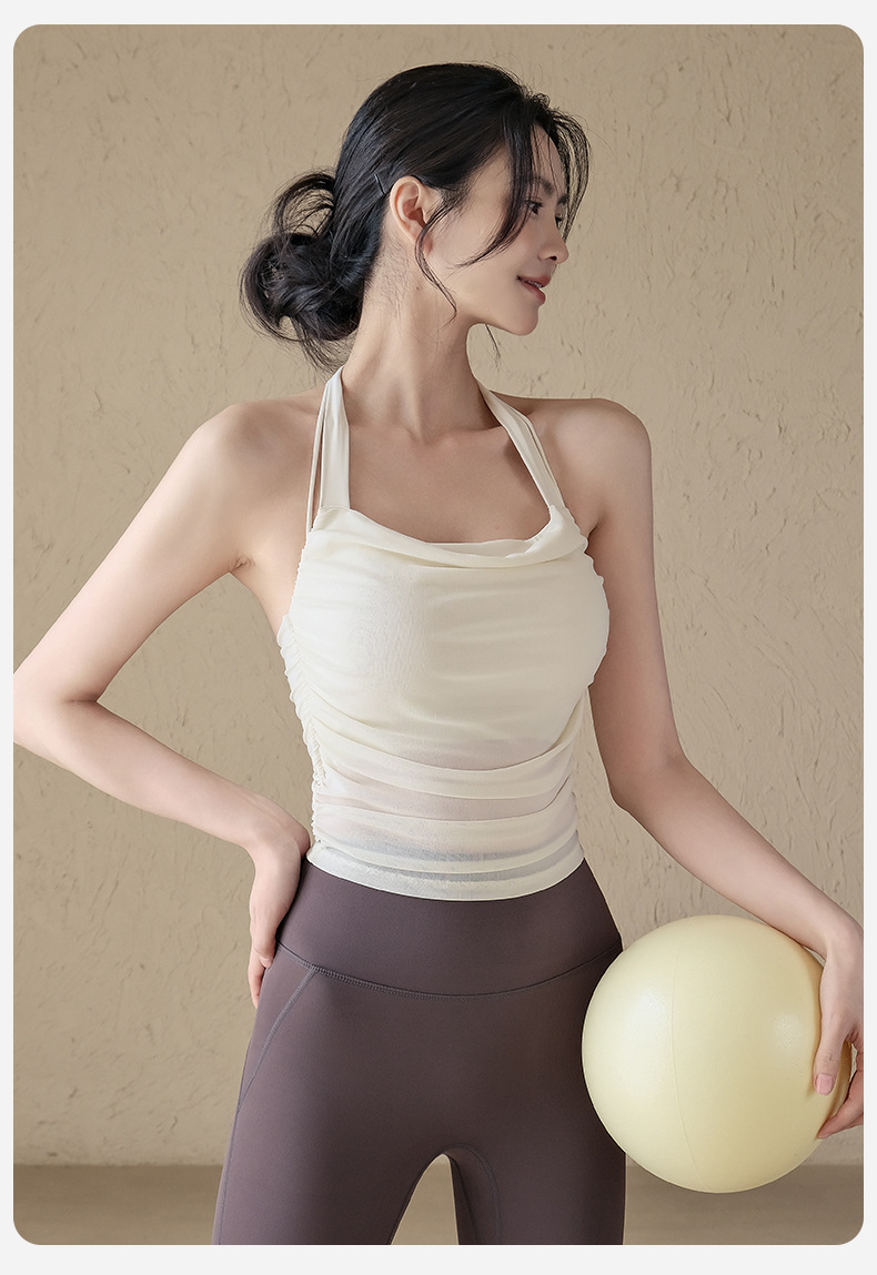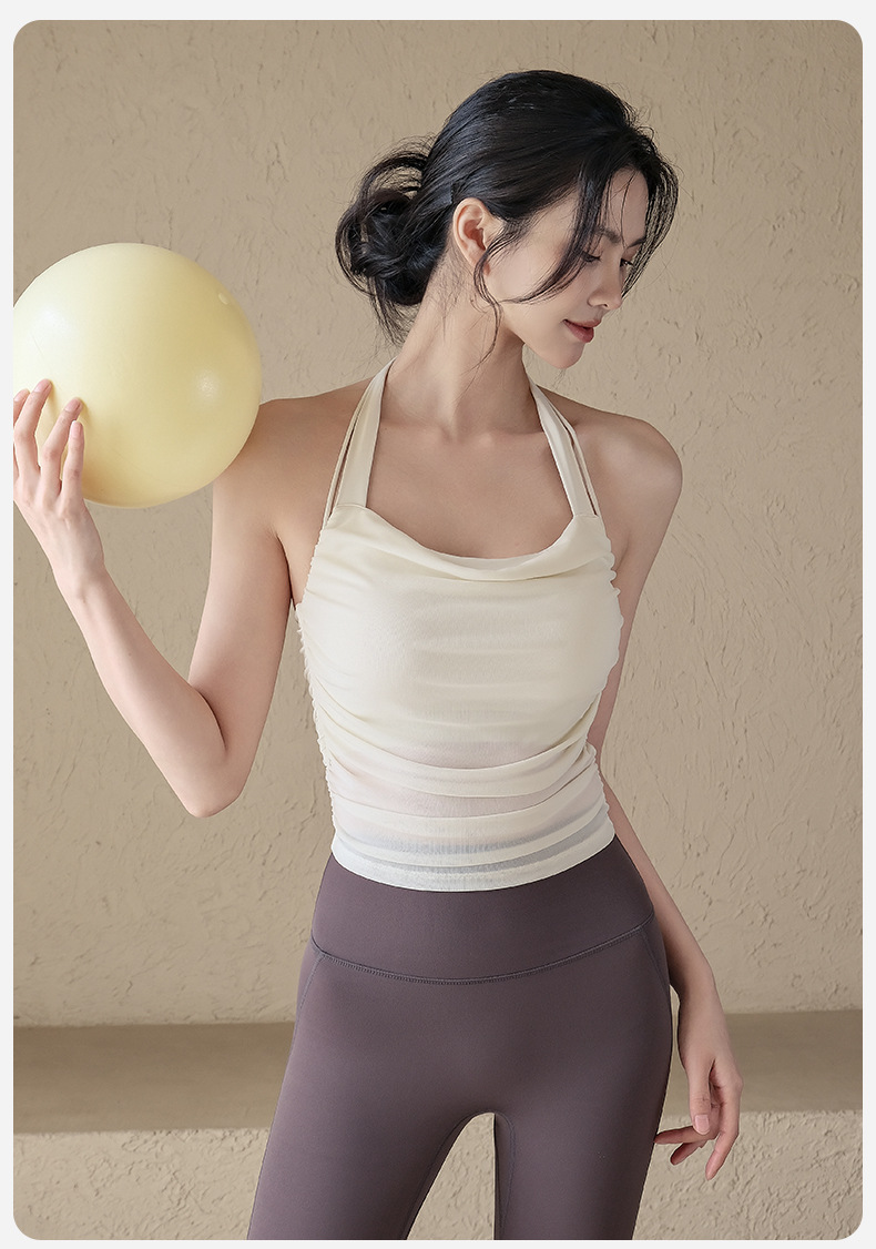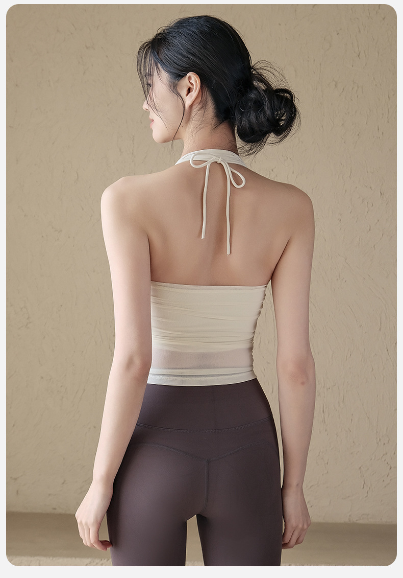 一體式網紗透氣性感露背顯瘦掛脖跑步訓練健身文胸