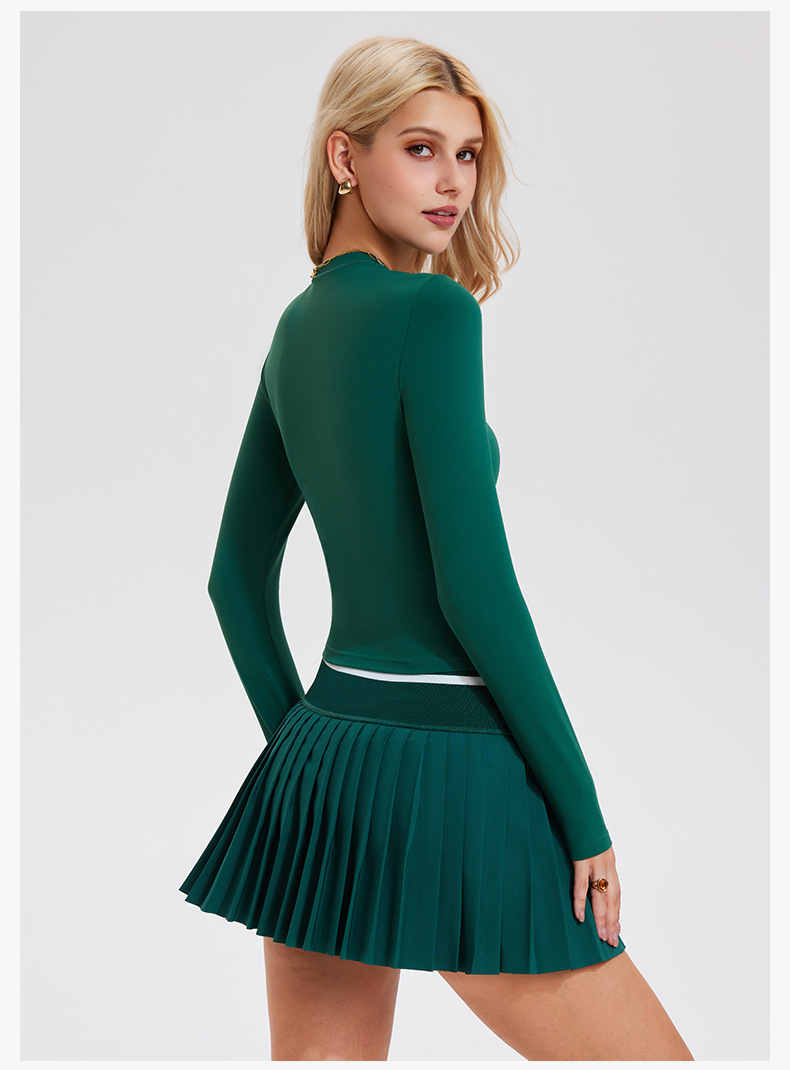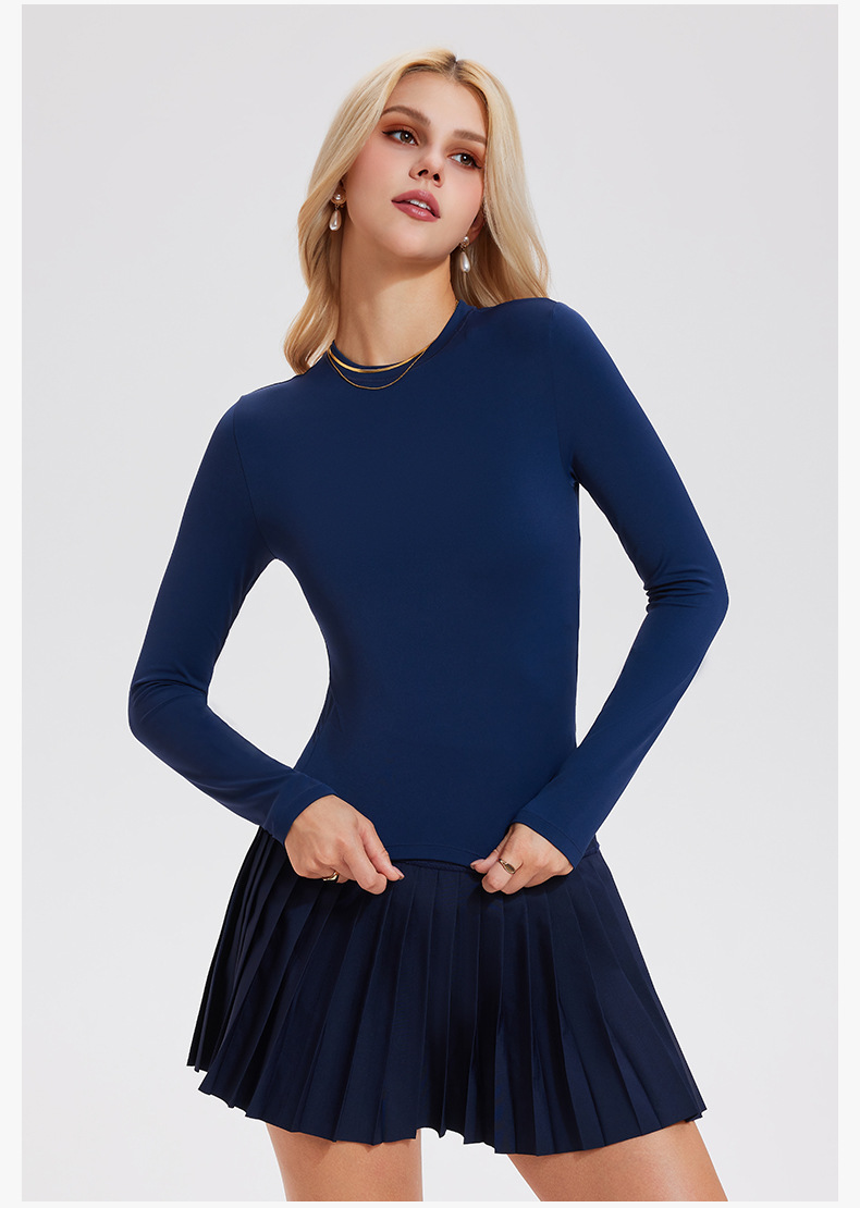 復古正肩純色彈力裸感健身運動上衣