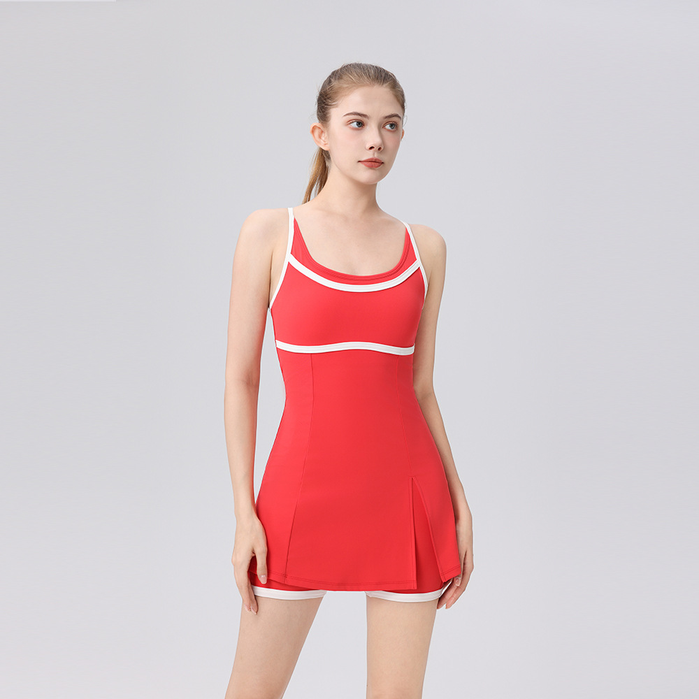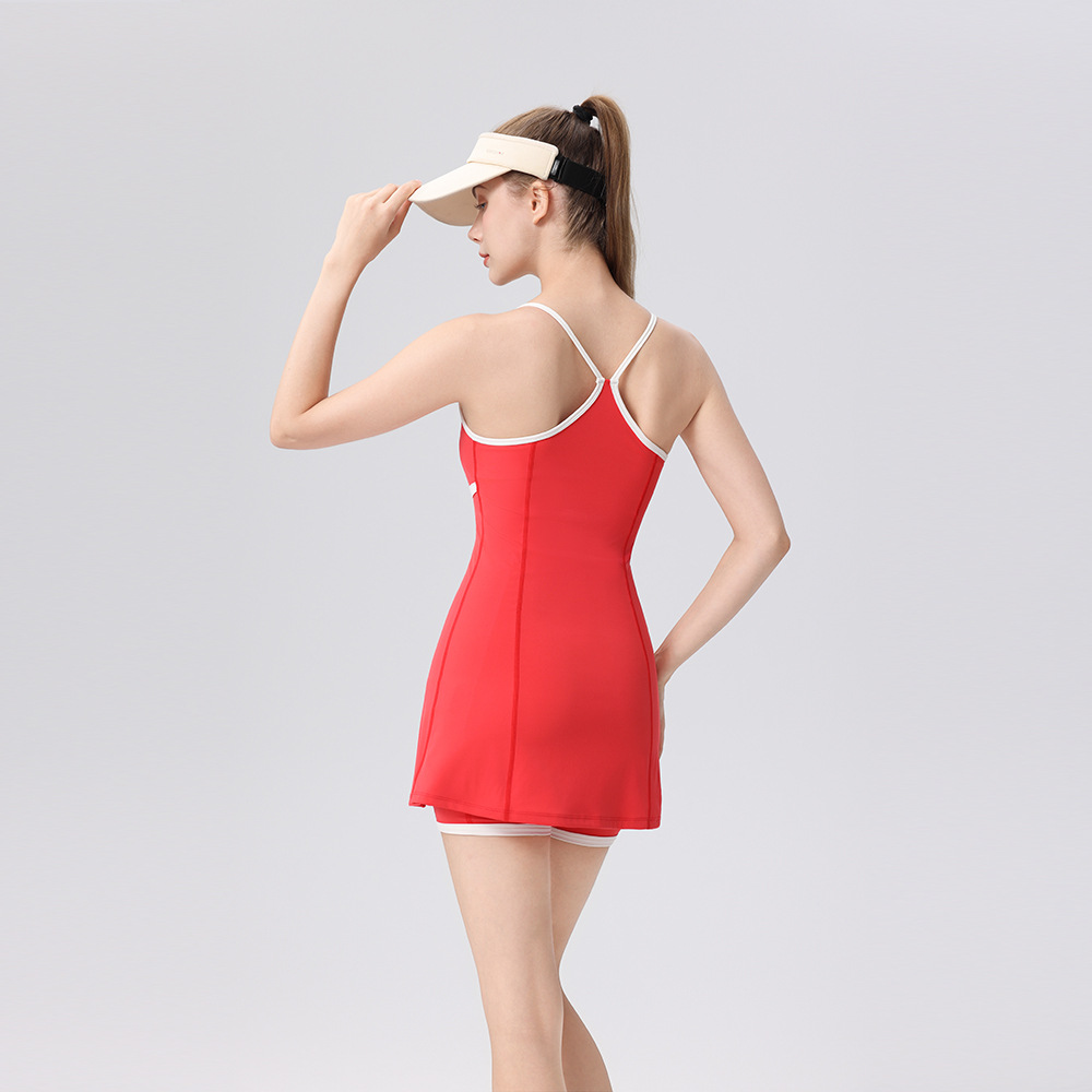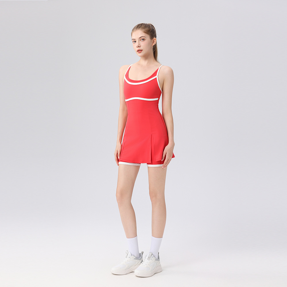 撞色休閒防走光羽毛球網球連衣裙
