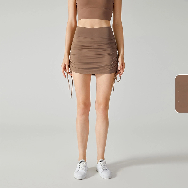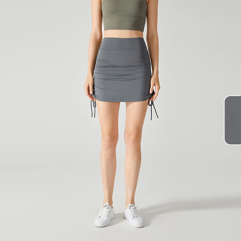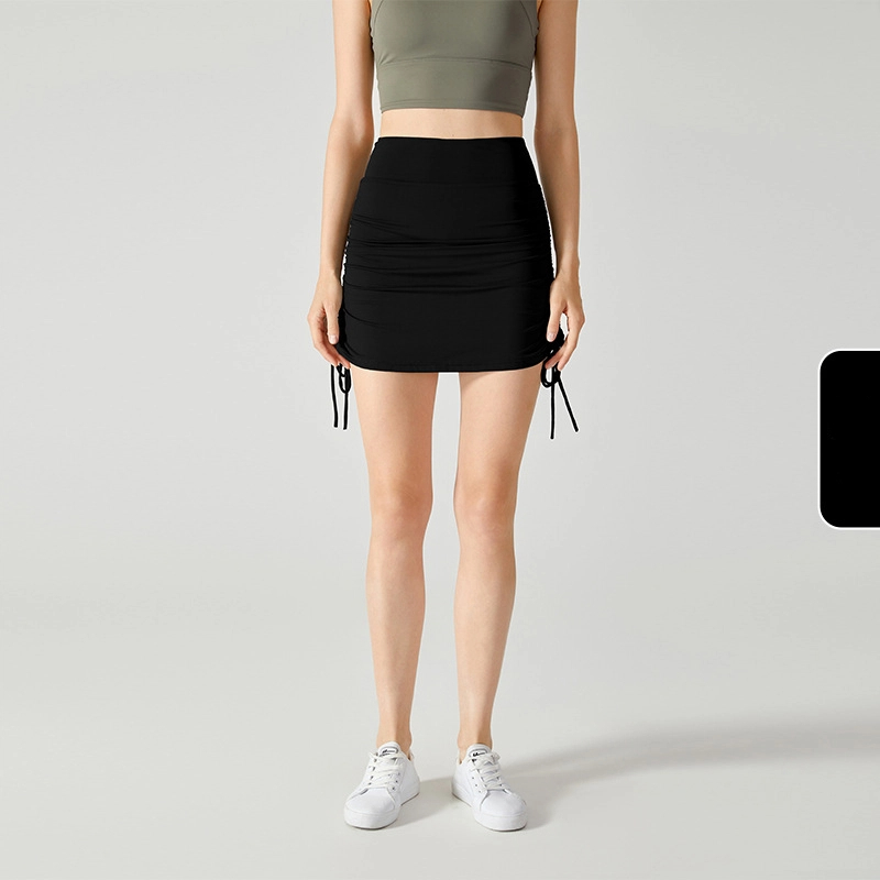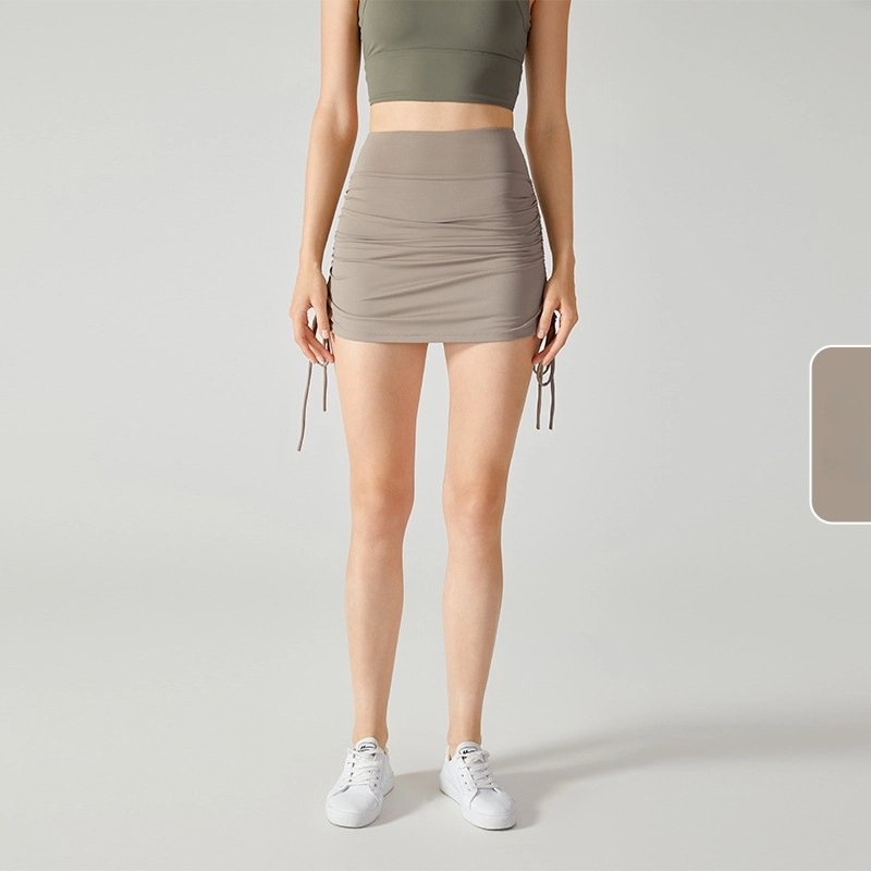 Drawstring tie anti-slip fake two-piece skirt