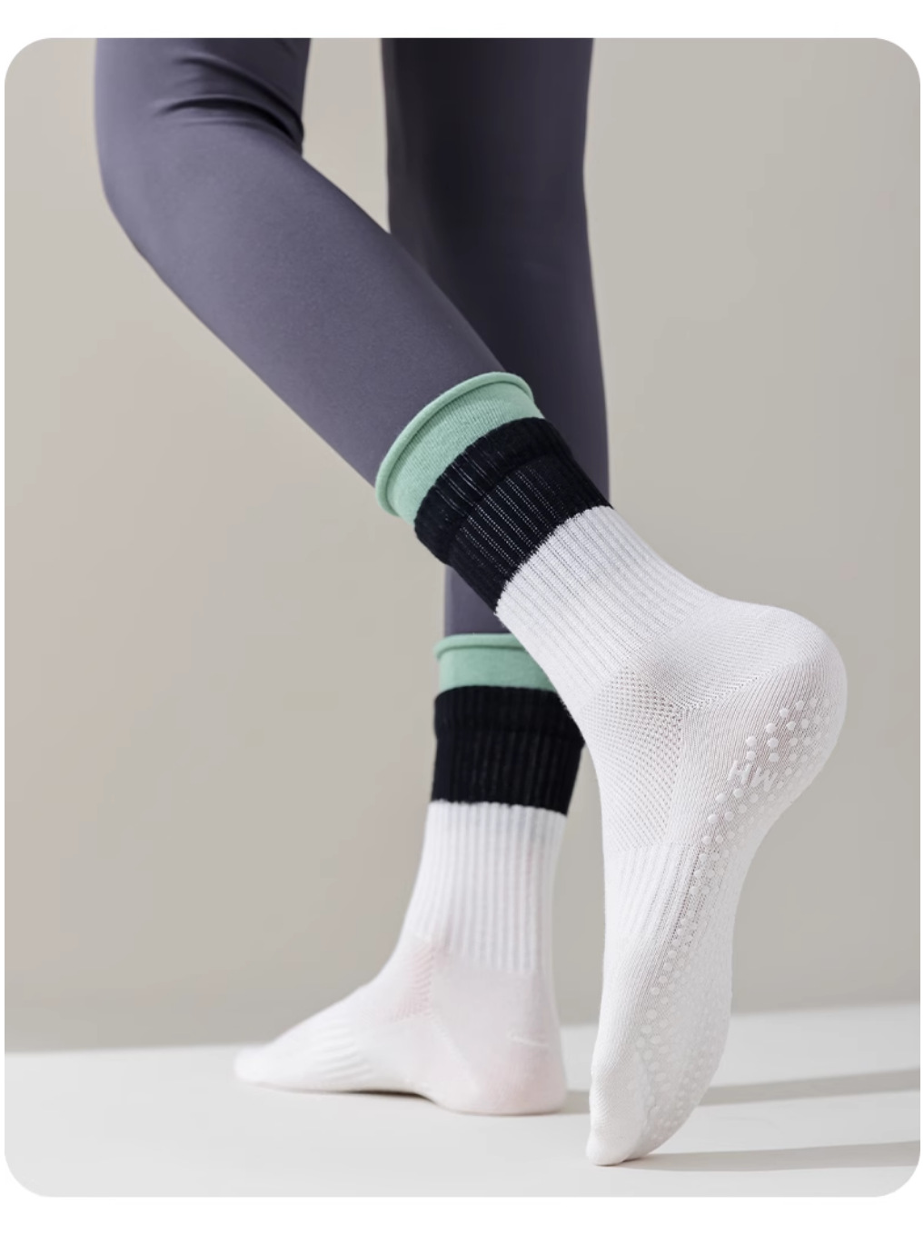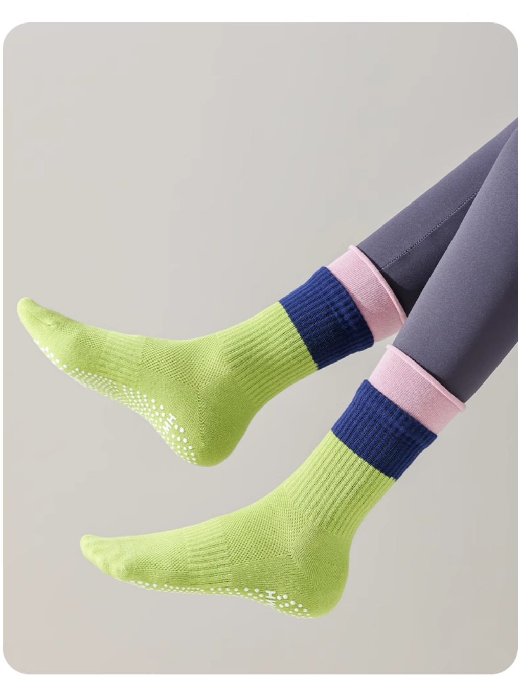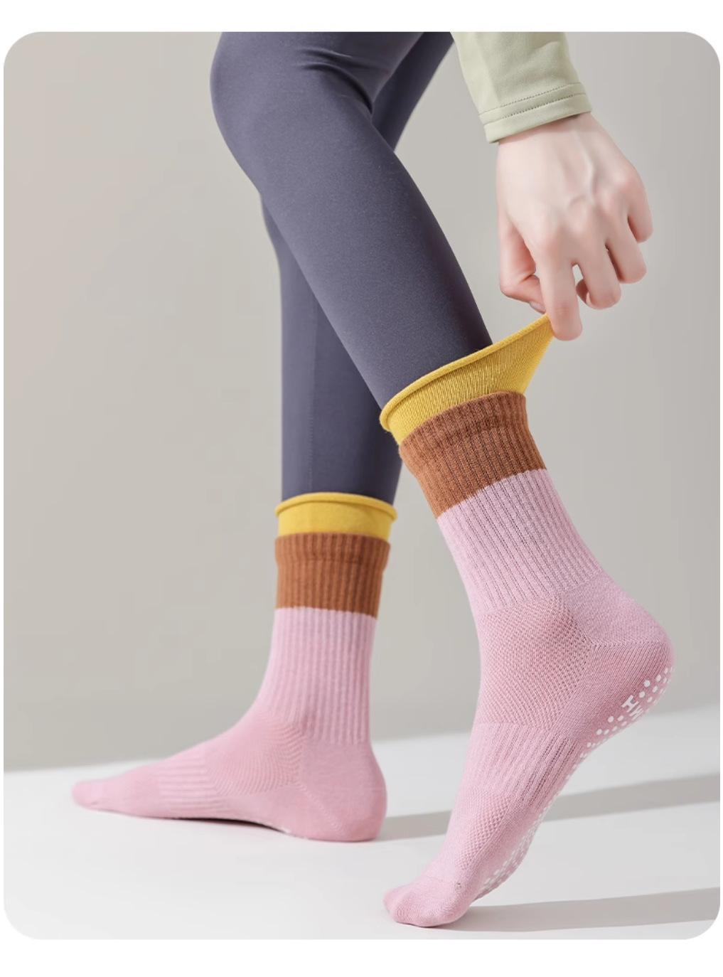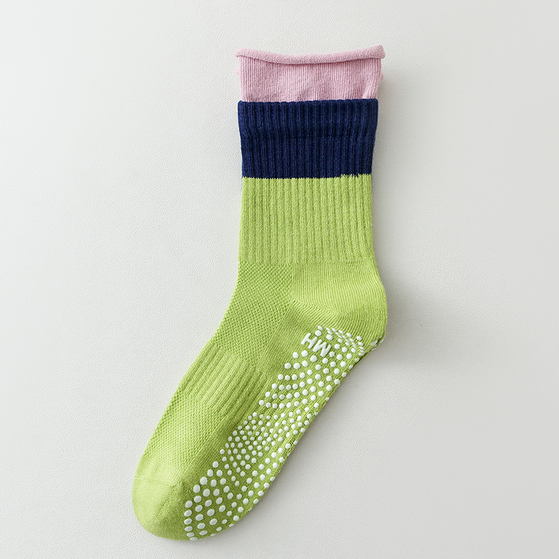 Professional non-slip color-blocked mid-barrel yoga socks