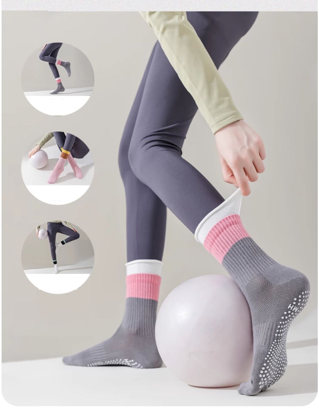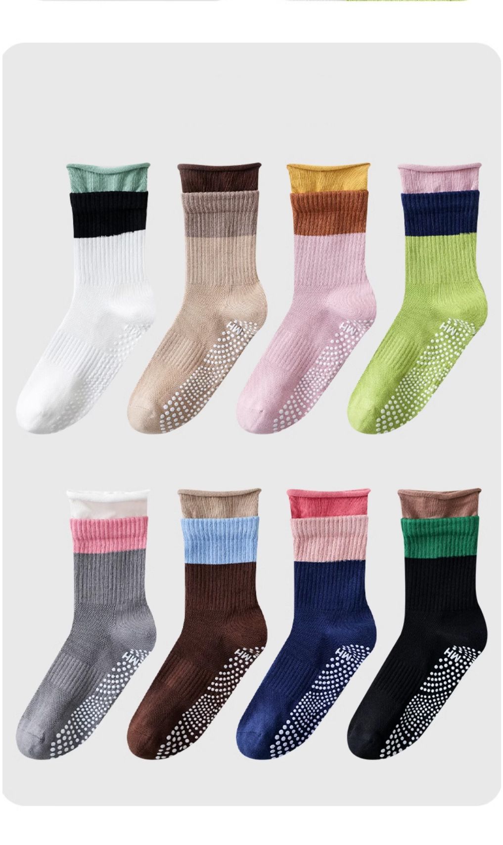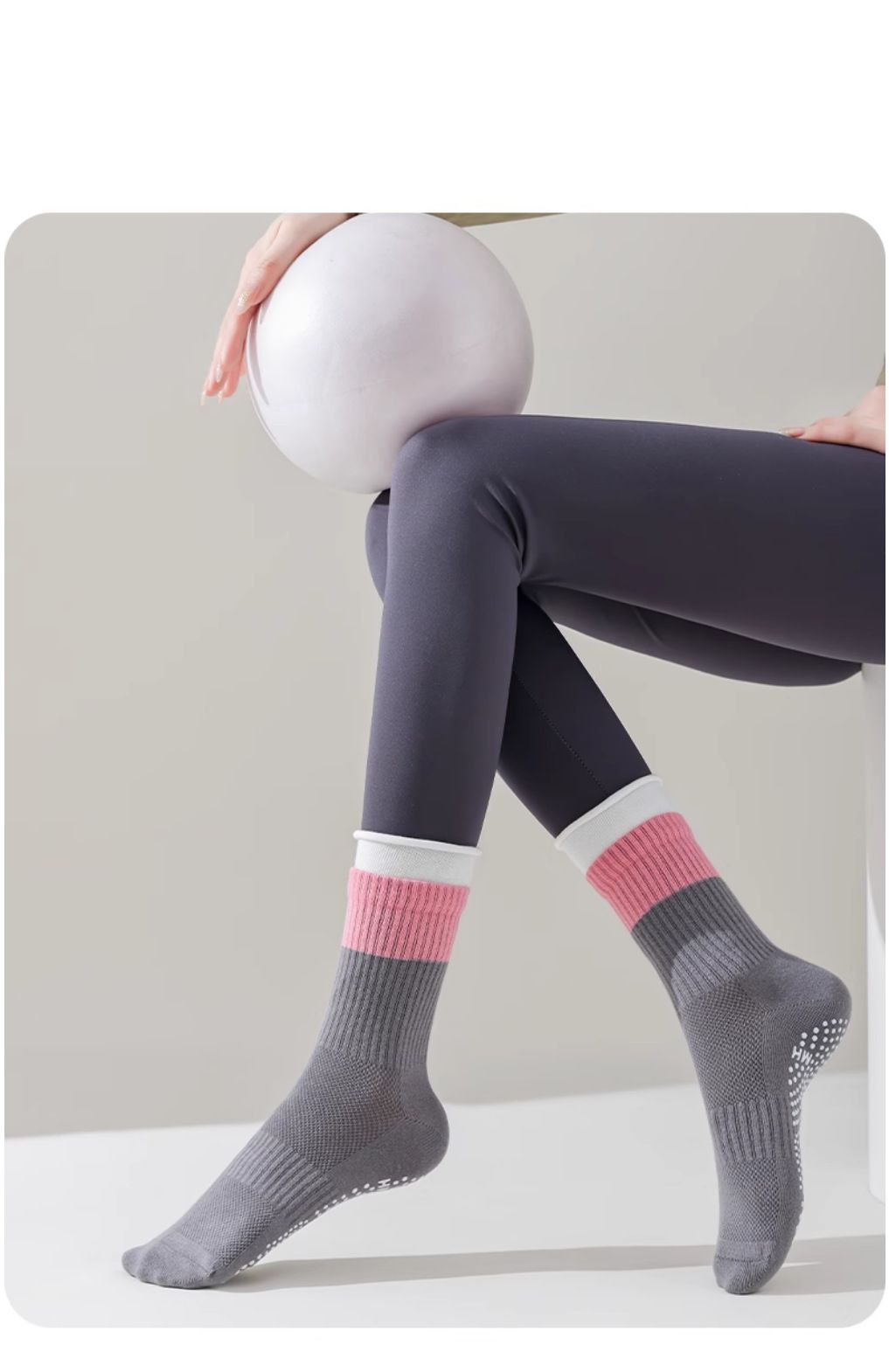 Professional non-slip color-blocked mid-barrel yoga socks