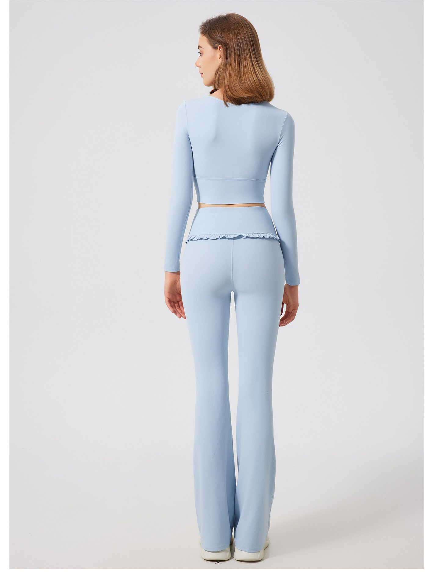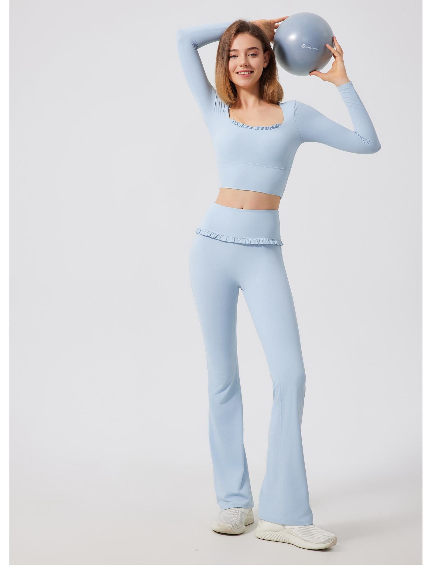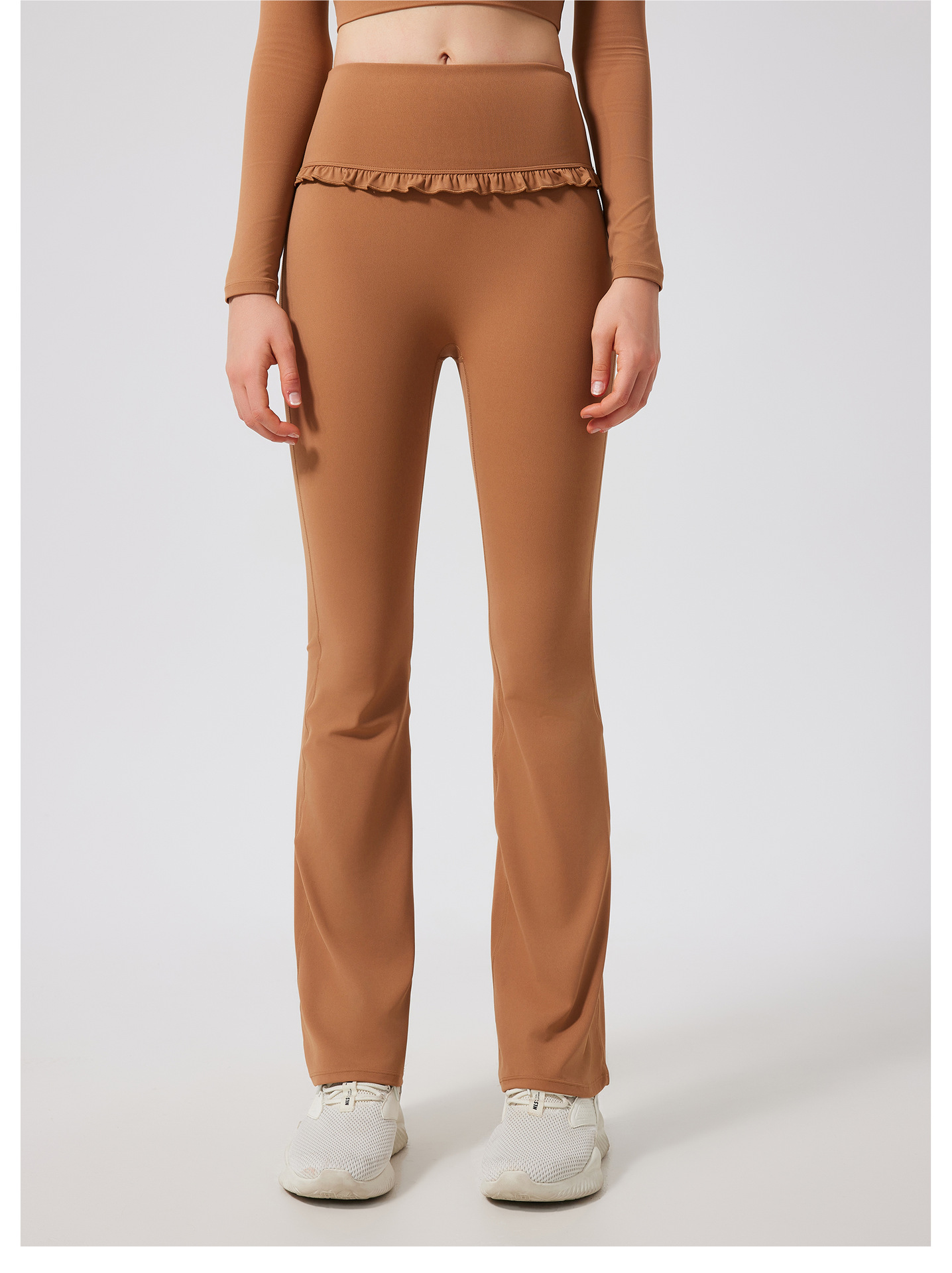 Ruffled slightly flared high-waisted slim slim breathable sports fitness pants