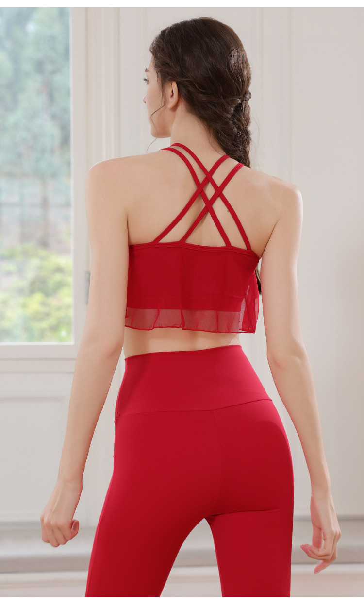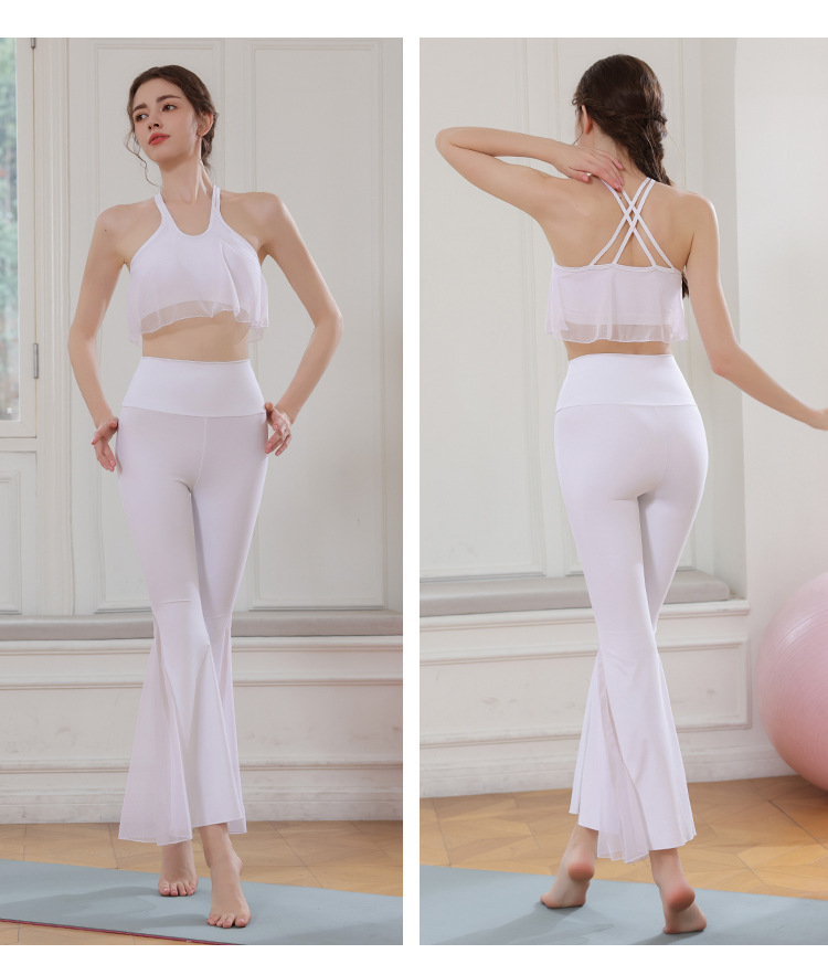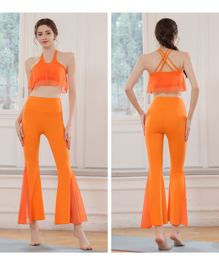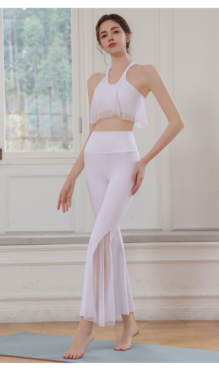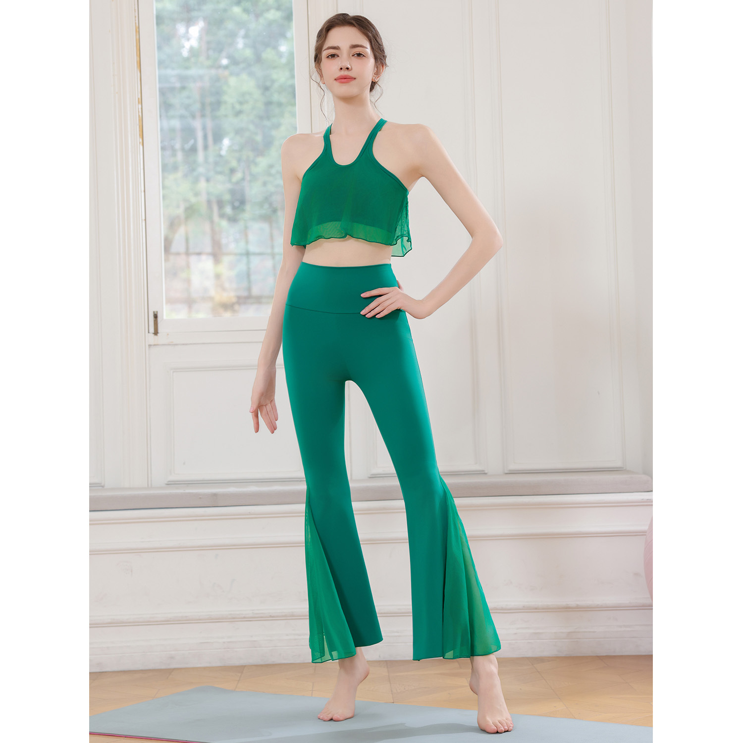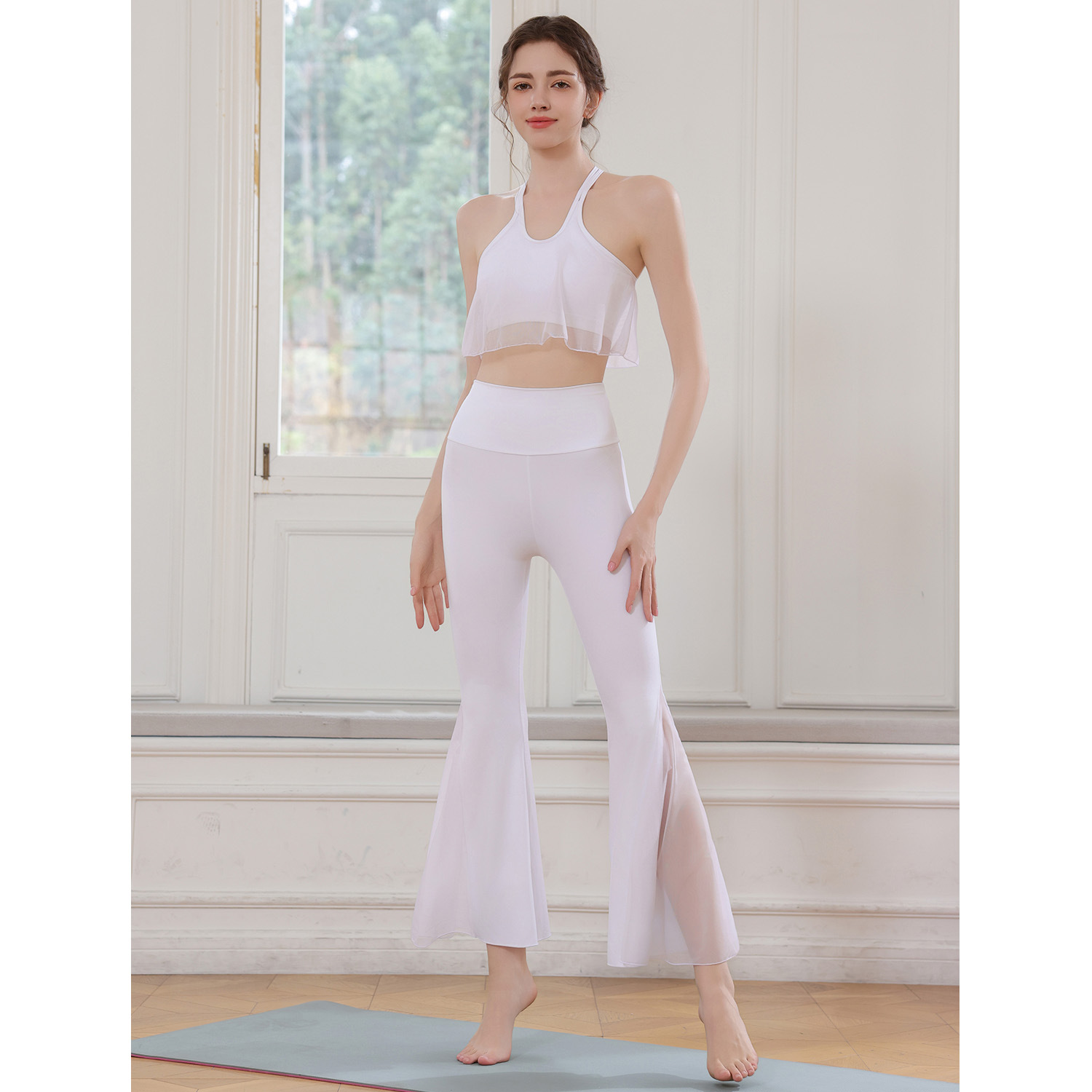 Dunhuang Flying Goddess Mesh Yarn Crossing Beauty Back Fork Flared Pants Set