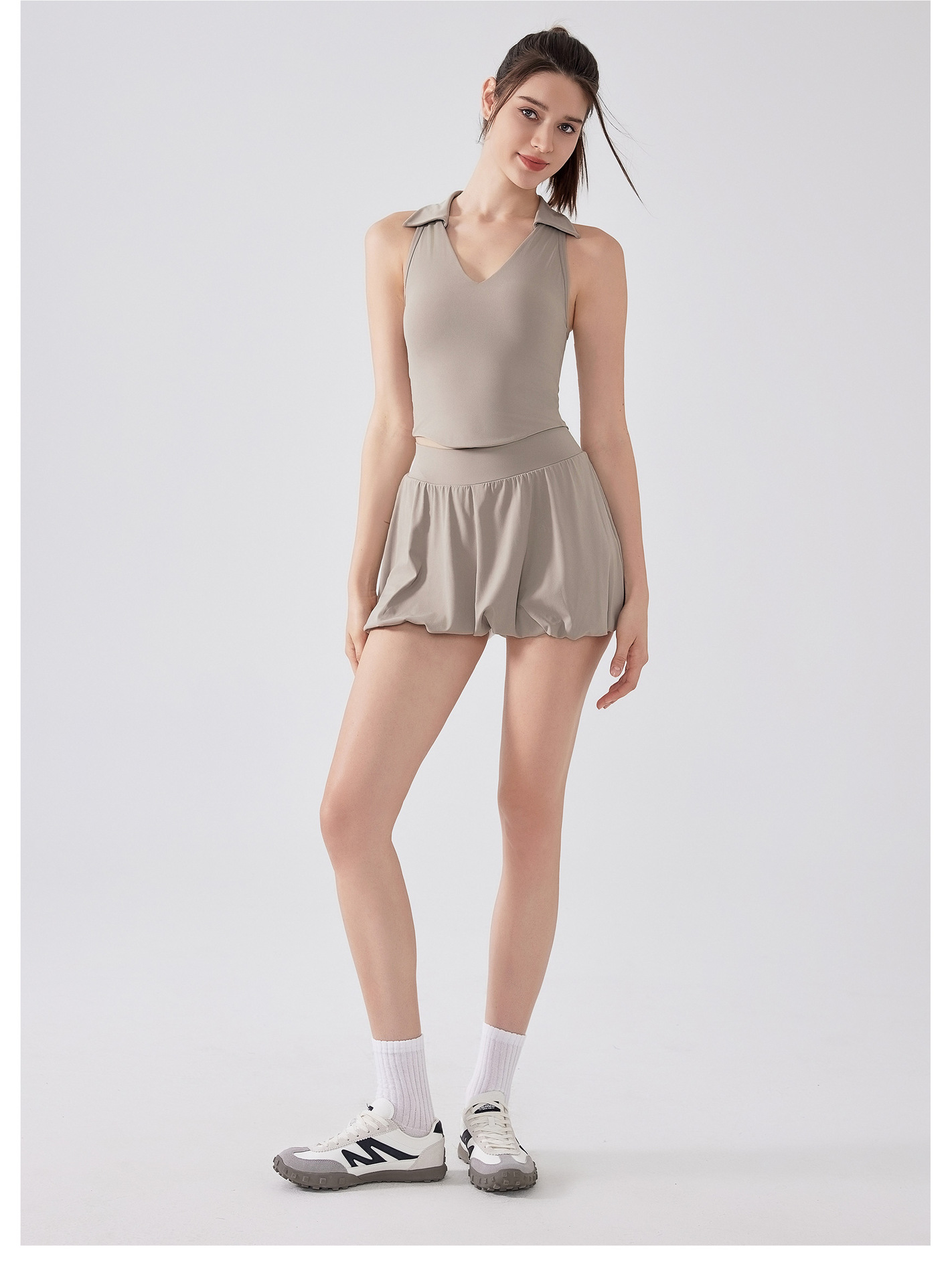 Nude high-waisted anti-walking tutu skirt running sports tennis skirt