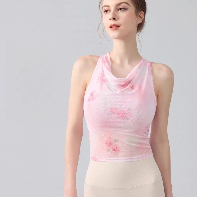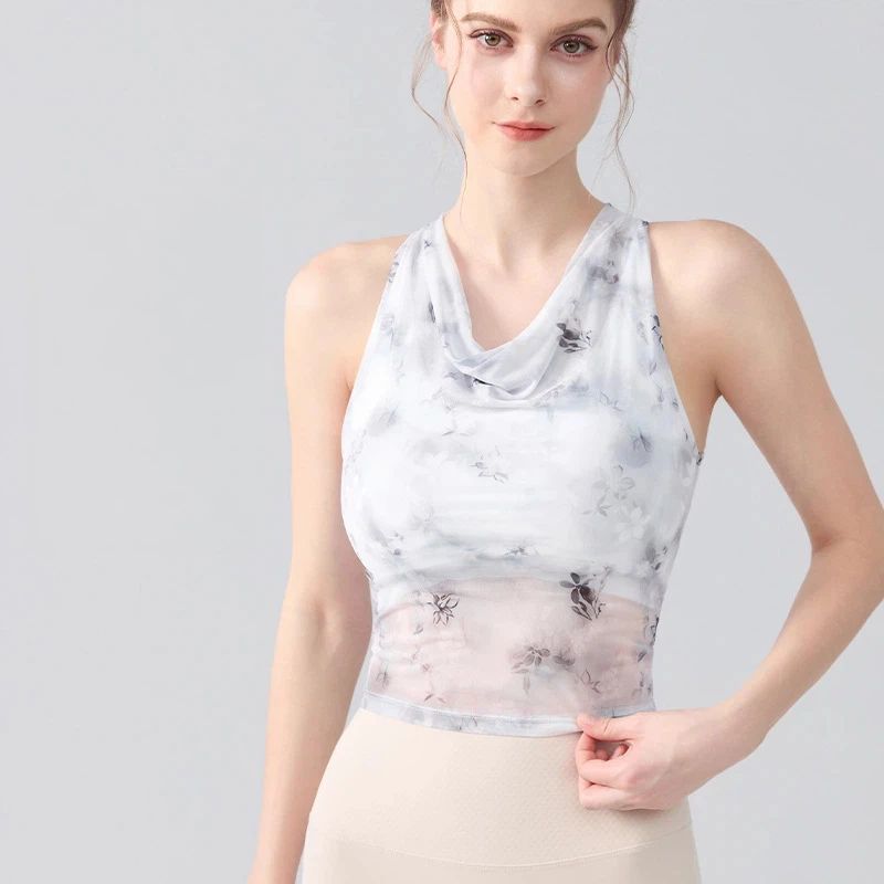 扎染印花蕩領掛脖運動背心