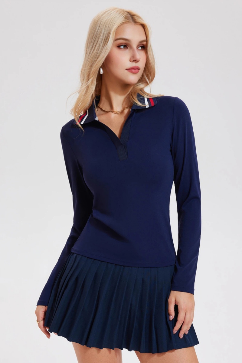 Quick-drying V-neck simple retro polo shirt long-sleeved top