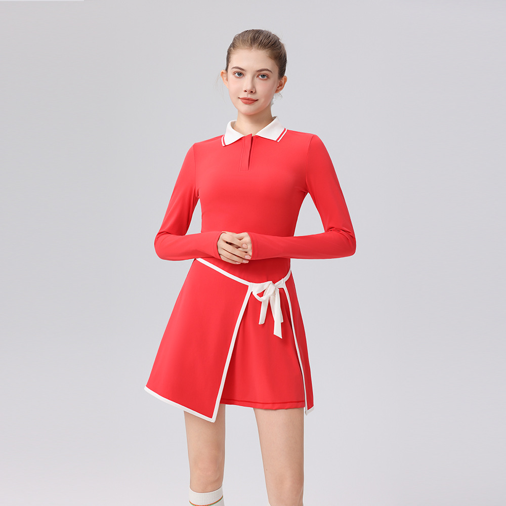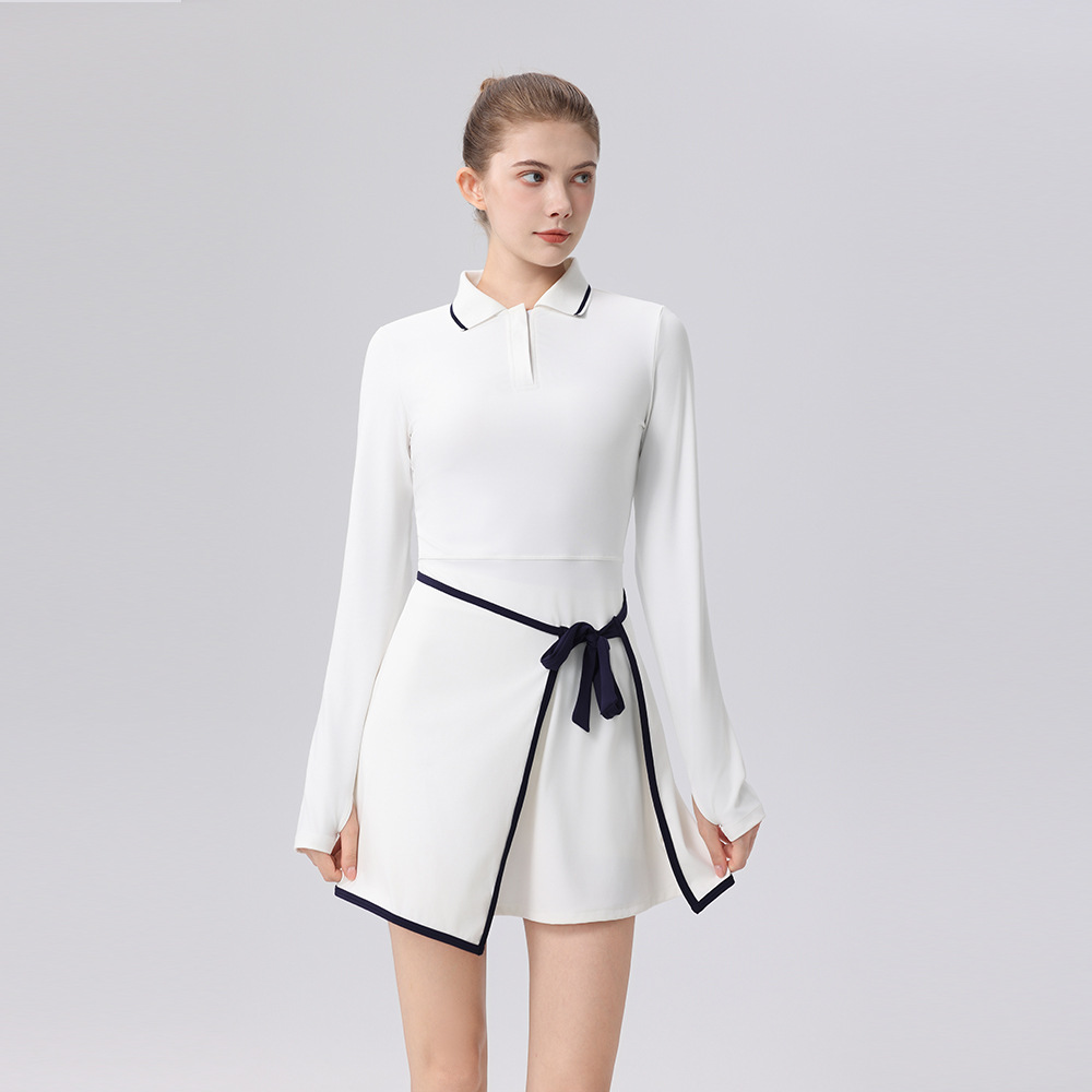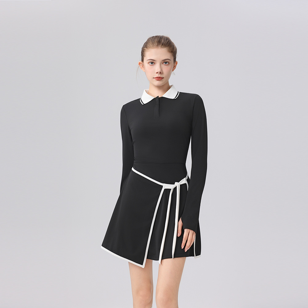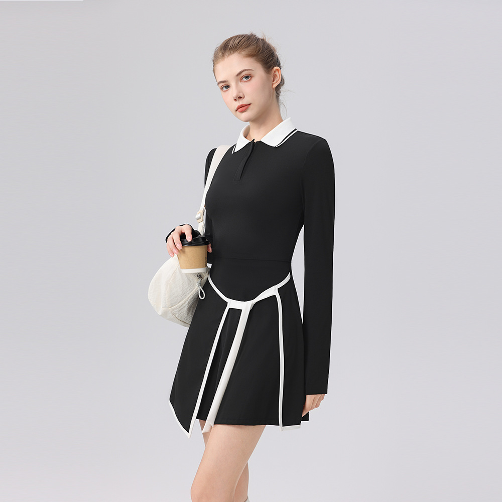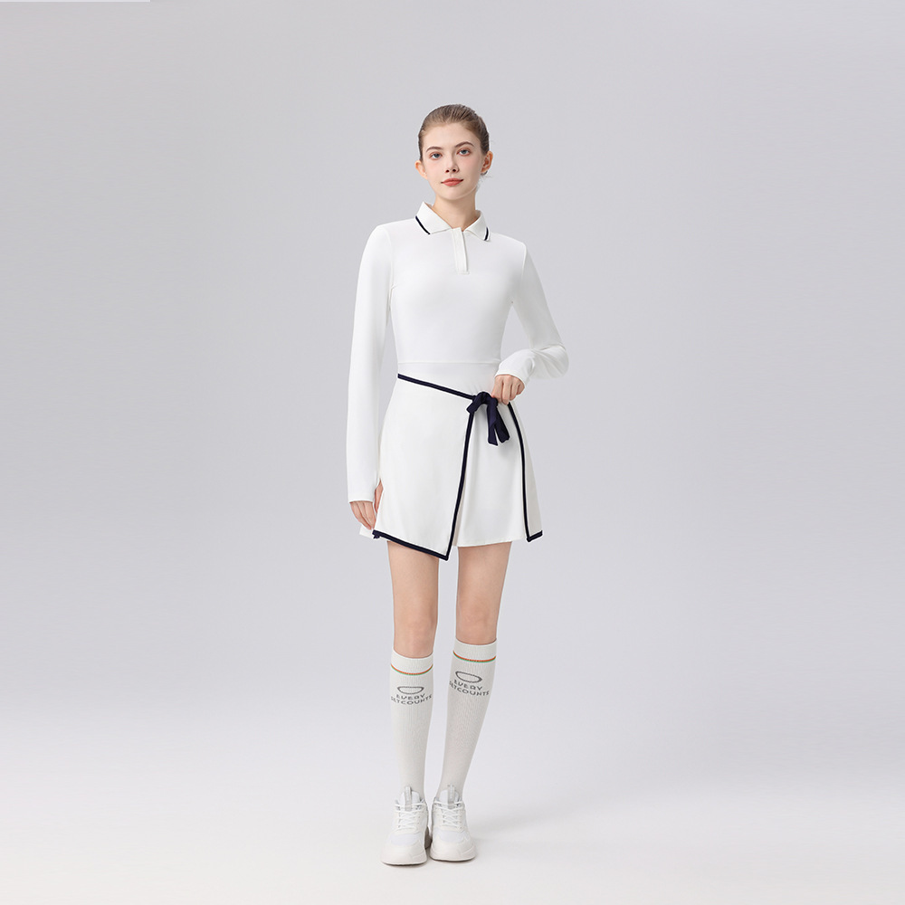 Contrasting polo collar trim height elastic golf tennis suit sports suit