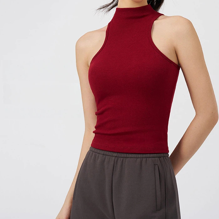 Lightweight stretch turtleneck sleeveless vest with chest pad