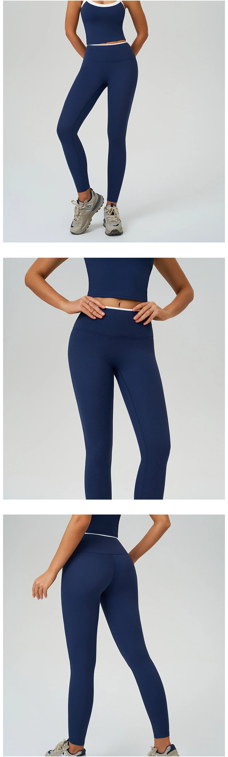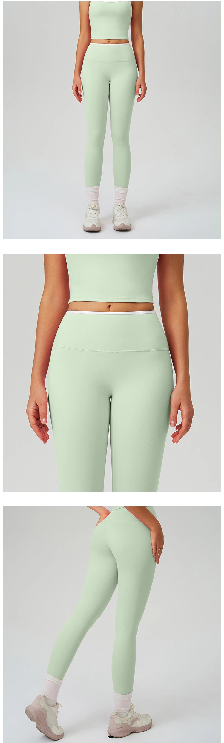 Quần legging thể thao chạy nhanh khô nhanh tương phản cạp cao